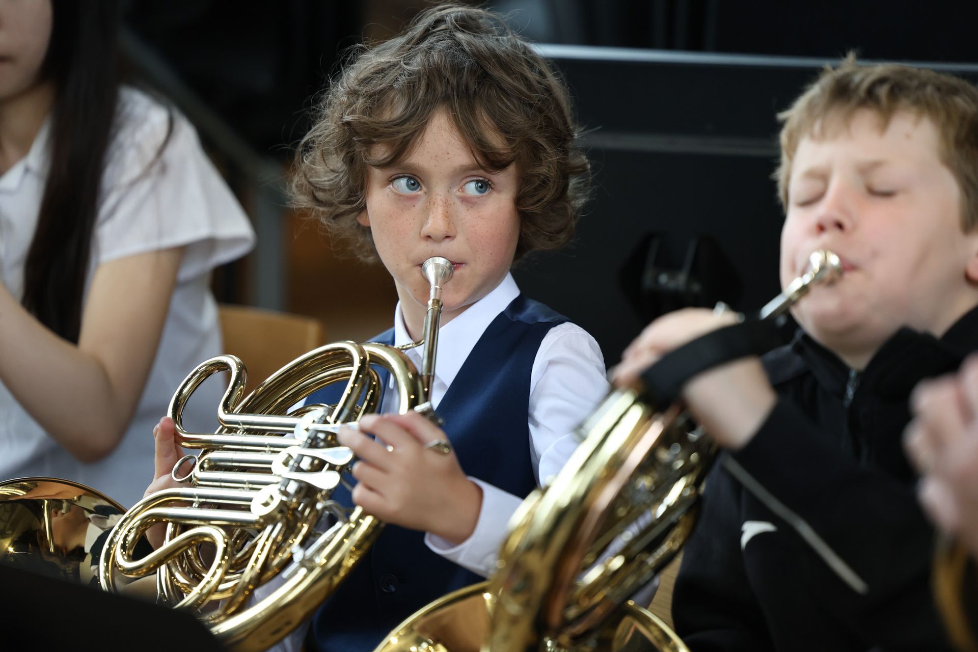 Instrumentalists can join one of two string orchestras, wind band, Hot Air, recorder clubs, guitar club or percussion group, all of which are led by musical specialists. We consider that singing is central to a musical education and our large School Choir is open to all pupils in Upper Two to Upper Three. There is also a smaller Chamber Choir for which pupils in Upper Two to Upper Three who enjoy a challenge may audition. We also have choirs in Lower Two, called Little Voices, and a combined Lower One and Upper One Choir.