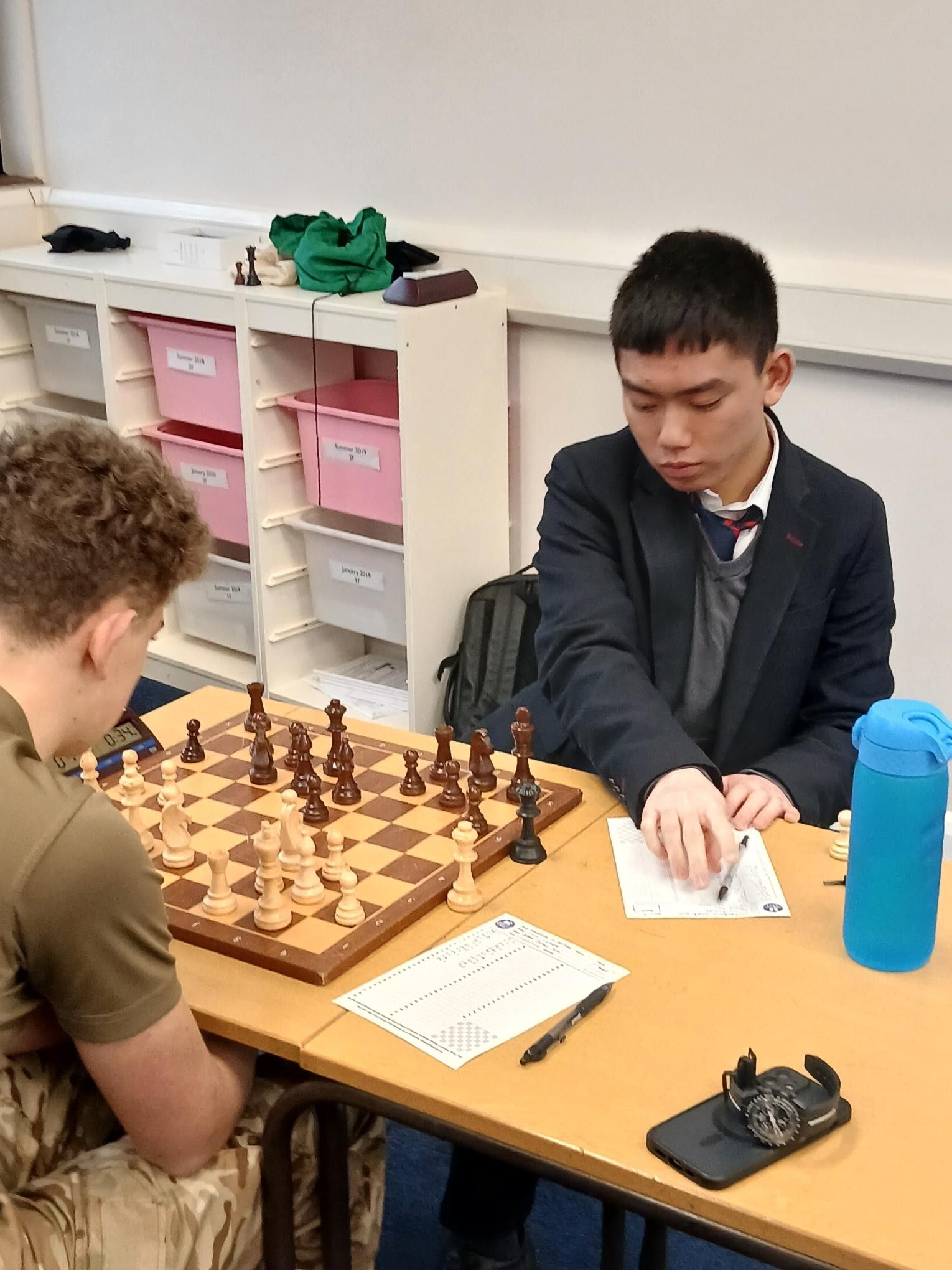 Thomas Hsia had a commanding position but was down to his last few seconds as his opponent still had plenty of time on the clock. After a few missteps from both sides, the time pressure proved too much and Thomas allowed a skewer and lost the game. Arthur Dannatt on Board 1 played a good game with the black pieces but also lost out in the end as his opponent's attack in the centre proved decisive. Although all games were competitive, the team unfortunately lost 4-2. Well done to those who played and a reminder that chess club takes place every Monday and Friday lunchtime in P9.