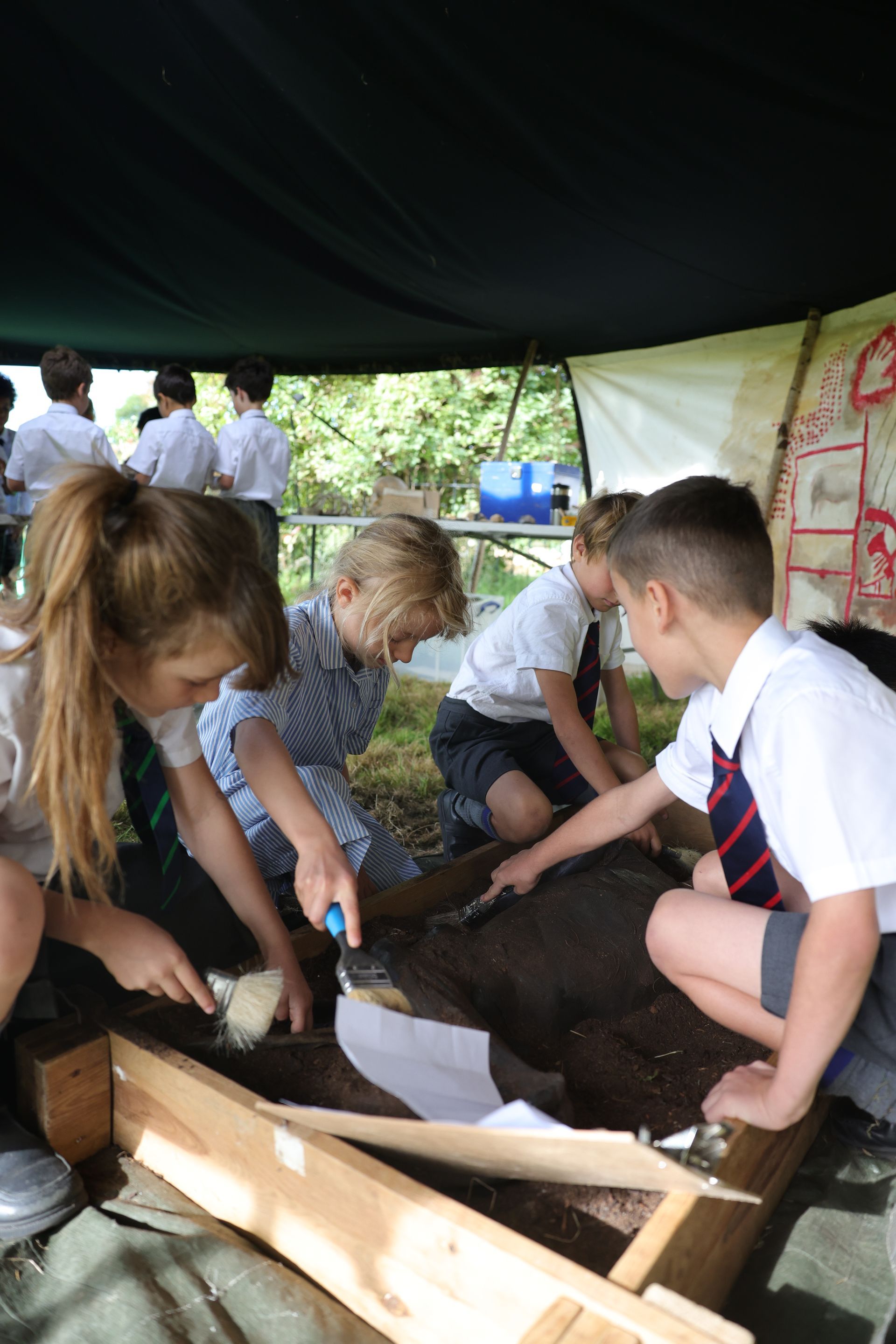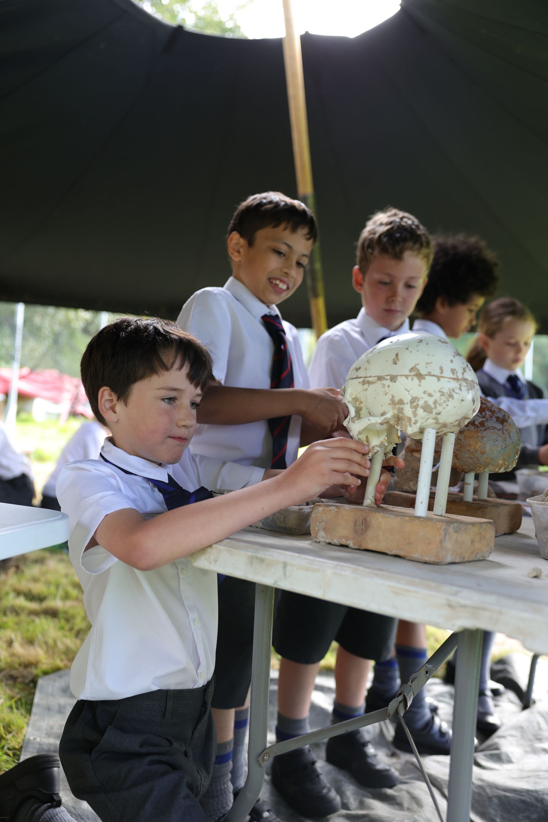 On Wednesday 10 September, Upper 2 put their detective hats on and went in search of some clues to reveal the past. They entered the tent and were met by the resident archaeologist. Pupils were excited to share all that they have learnt about primary and secondary sources of evidence and couldn’t wait to get ‘stuck in’ to digging for evidence themselves. There were three ‘trenches’ with evidence buried under either sand or soil.
