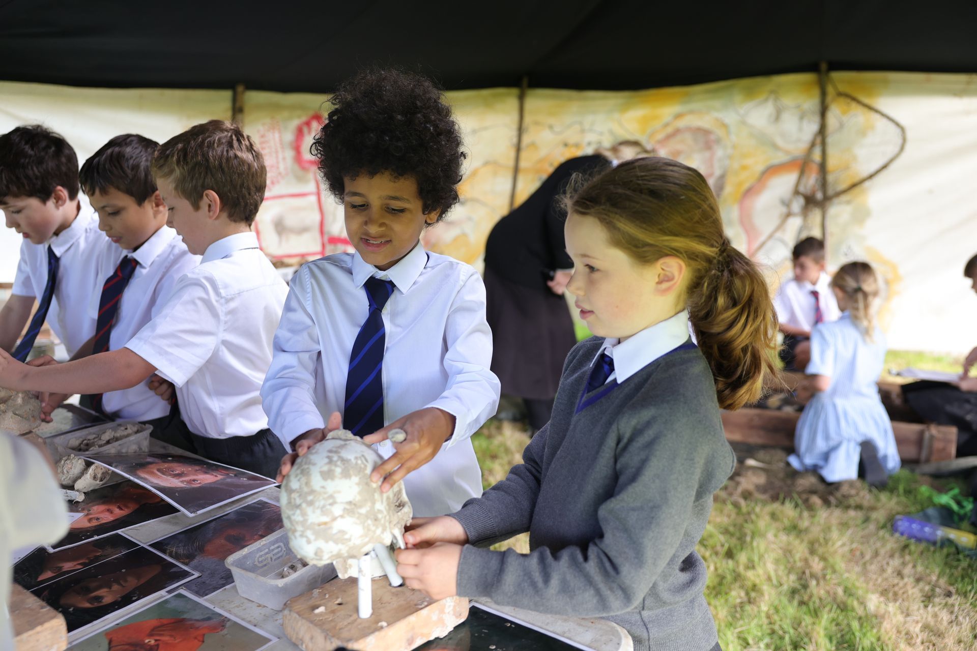 After being taught how to ‘dig with brushes’ and record their findings, they began to explore the contents of their trench. It felt as though they were on real-life archaeological digs, with each group discovering clues and trying to piece together the evidence to decide what they had found. One group found a replica ‘bog body’ and delighted in coming up with theories about how the body had got there and who it was. One group discovered a neolithic butchery site and the third group found such a wide range of artefacts, including pottery and sewing materials, that they decided it must have been someone’s house.