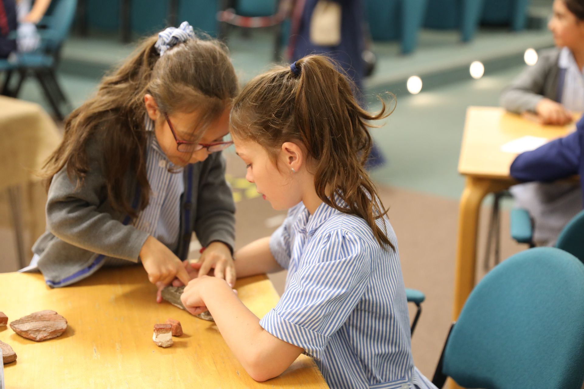 After a morning packed with discovery, the pupils enjoyed a well-earned lunch, with none of the pupils sure who they agreed with yet. After lunch, we split again and one group began by spending some time with Essica, who shared some very interesting (and very ancient) artefacts with us. We loved learning about the oil lamps, the beautiful mosaics and very well-designed roof tiles. We could understand why the Romans felt as though they had provided a better way of life for the Celts. We swapped over and we spent some time with an archaeologist, learning about how the Celts made Torcs and why they were so important to them. We brought home our lovely new jewelry and found it interesting that the Celts buried their precious possessions ceremonially, almost like an offering to God.