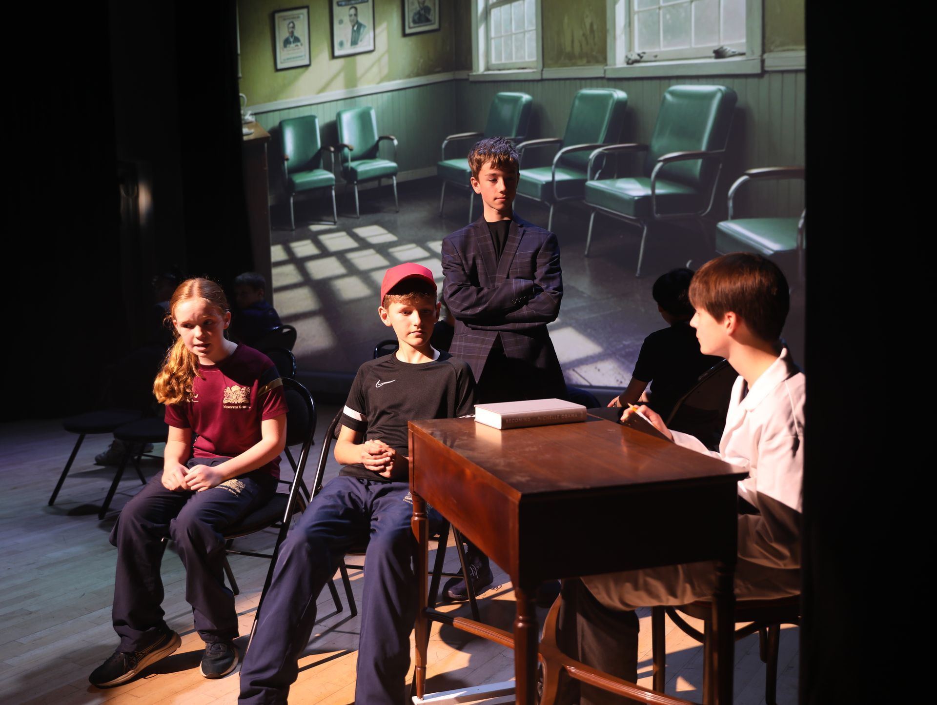On Wednesday 26 March, pupils displayed the works of Fantastic Mr. Fox and Ernie’s Incredible Illucinations. Roald Dahl’s much-loved story, Fantastic Mr Fox, follows the vain attempts of three farmers, Boggis, Bunce and Bean, one fat, one short, one lean, to get rid of the sly fox who regularly steals food from their farms. They try to get rid of him by any means possible. Outwitted at every turn, by the Fantastic Mr Fox who was played brilliantly by Santiago O’Dwyer. Pupils brought this to life with wit and humour, capturing the mischief of the tale. Ernie’s Incredible Illucinations showcases the tale of a young boy with an incredible imagination. Ernie’s parents take him to the doctor in search of a cure but once they’re there, they discover Ernie’s ‘illucinations’ are more powerful than they realised. Everything Ernie imagines – from secret agents to a boxing granny – becomes real. Pupils utilised multi-rolling and physical theatre in their performance, allowing for incredibly engaging storytelling.
