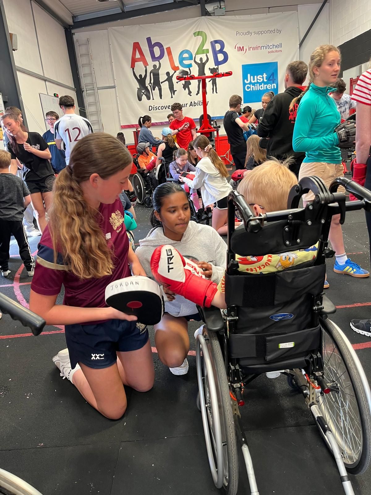 "Today at the Able2B Gym we were doing boxing exercises. When I arrived I was given pads and paired up. I was paired up with a young boy named Reuben and my job was to be his boxing partner, keep him focused and make sure his listening ears were on. We did a bunch of different punches like straights, doubles, uppercuts and hooks and I had a lot of fun - and I think Reuben did as well. I think one of my highlights was him calling our personal trainer 'King Jon' which I think everyone found quite funny. At the end we did another fun game to keep us moving and then it was time to say goodbye. I made sure Reuben was with his grandad and then I went home. I'm looking forward to the next training session!"