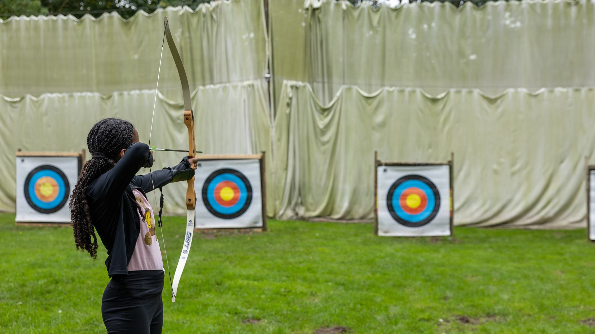 We were divided into groups for our activities. The first one was clout archery, where we had to shoot arrows high into the air to land as close as possible to a target on the ground. Many of us managed to shoot high, which was so much fun!