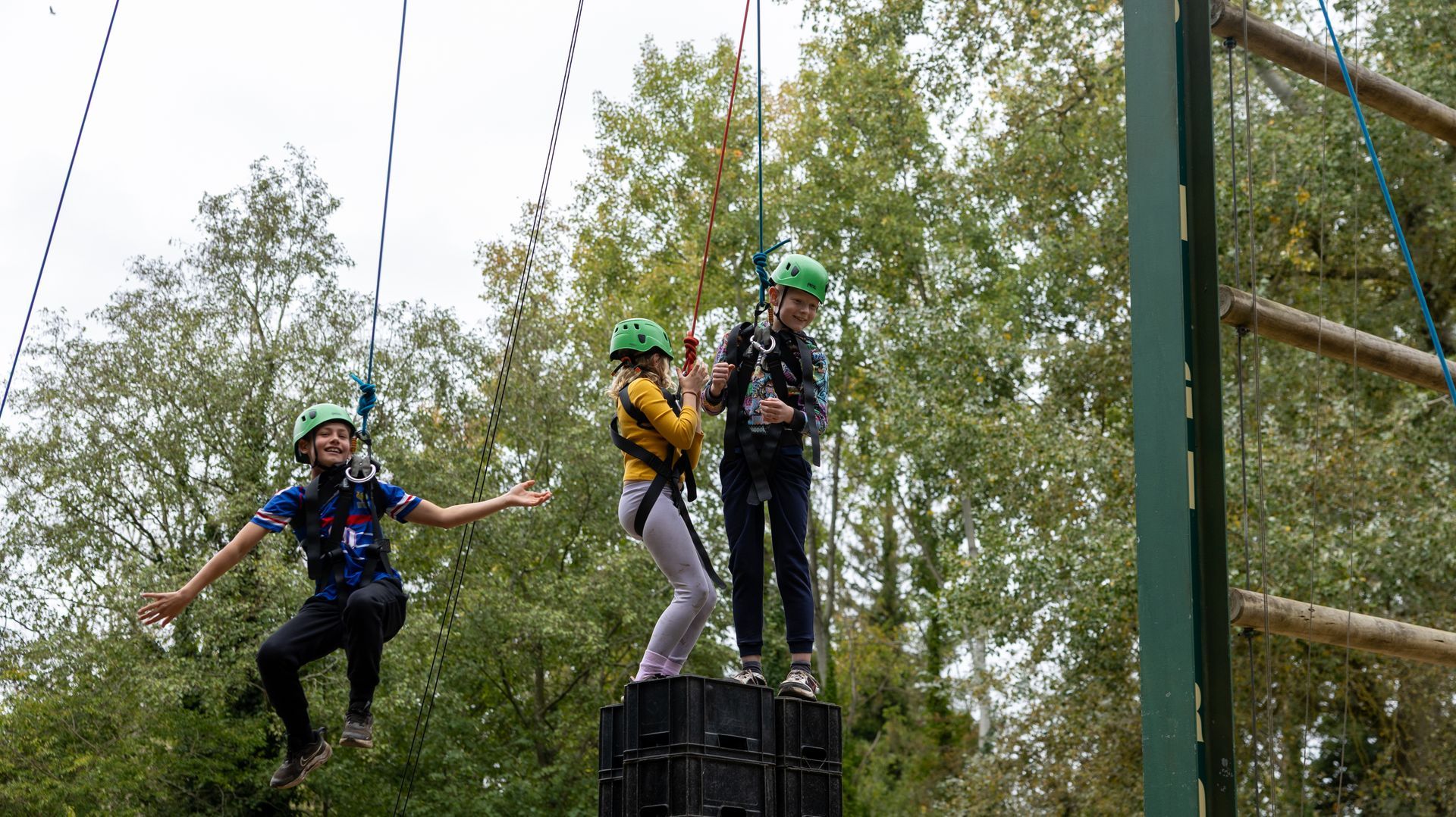 The next morning, we had a lovely breakfast of bacon rolls before starting our first activity of the day — the trapeze jump, where we had to leap off a high platform and try to reach a bar. It was thrilling!