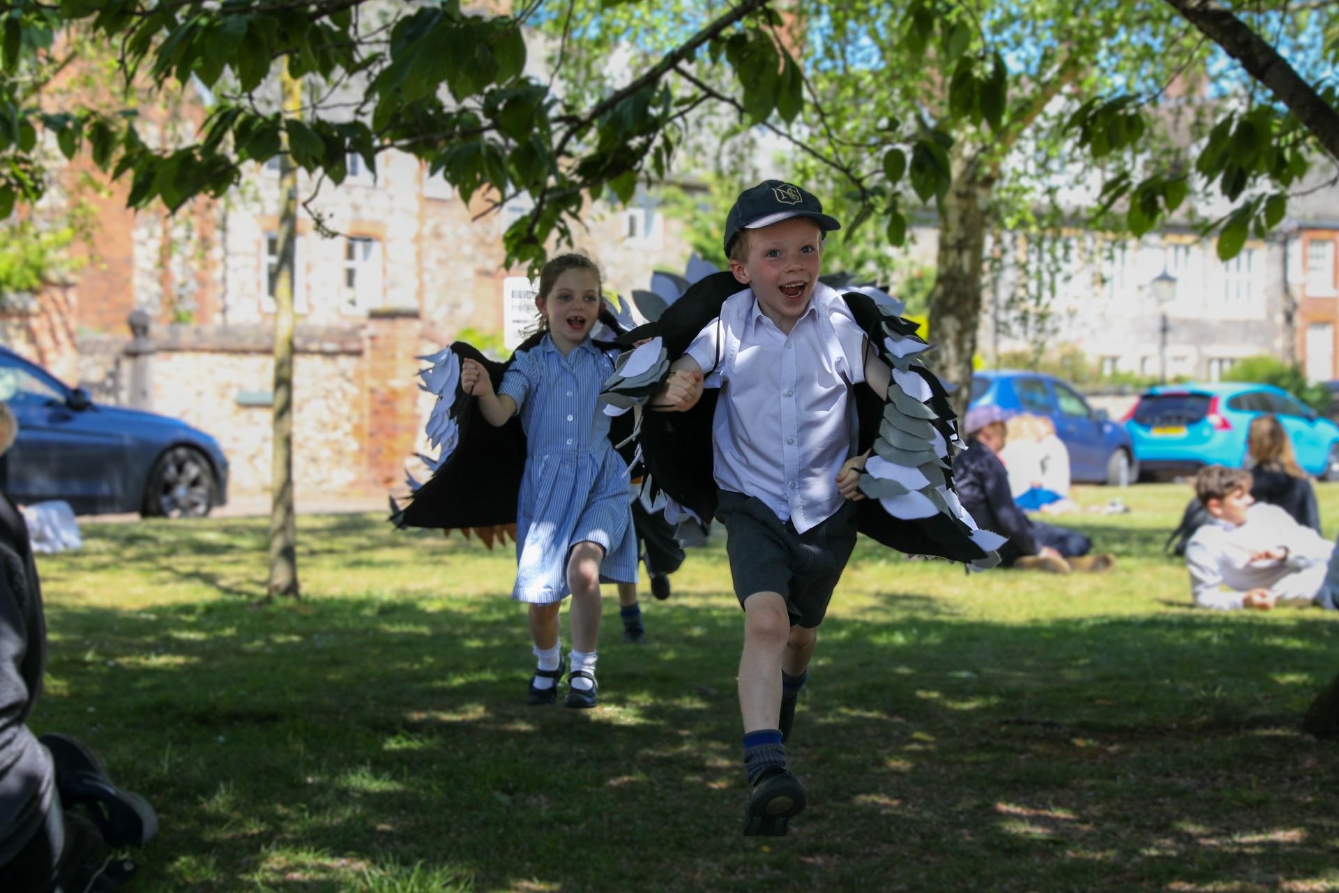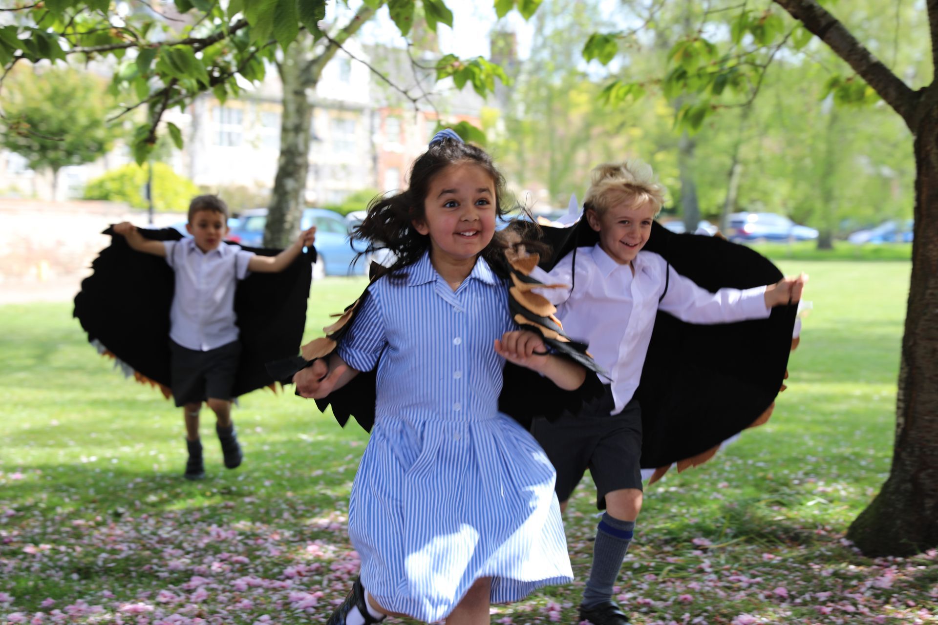 Pupils also examined models of different birds of prey, such as a kestrel and a hobby, noticing how they are adapted to catch their food successfully. To complete their visit, the children had fun trying on model wings of various UK birds of prey and even tested them out by going on a short 'flight' around the Lower Close. Thanks to the Hawk and Owl Trust for giving pupils an insight into the fascinating wildlife which lives in Cathedral Close.