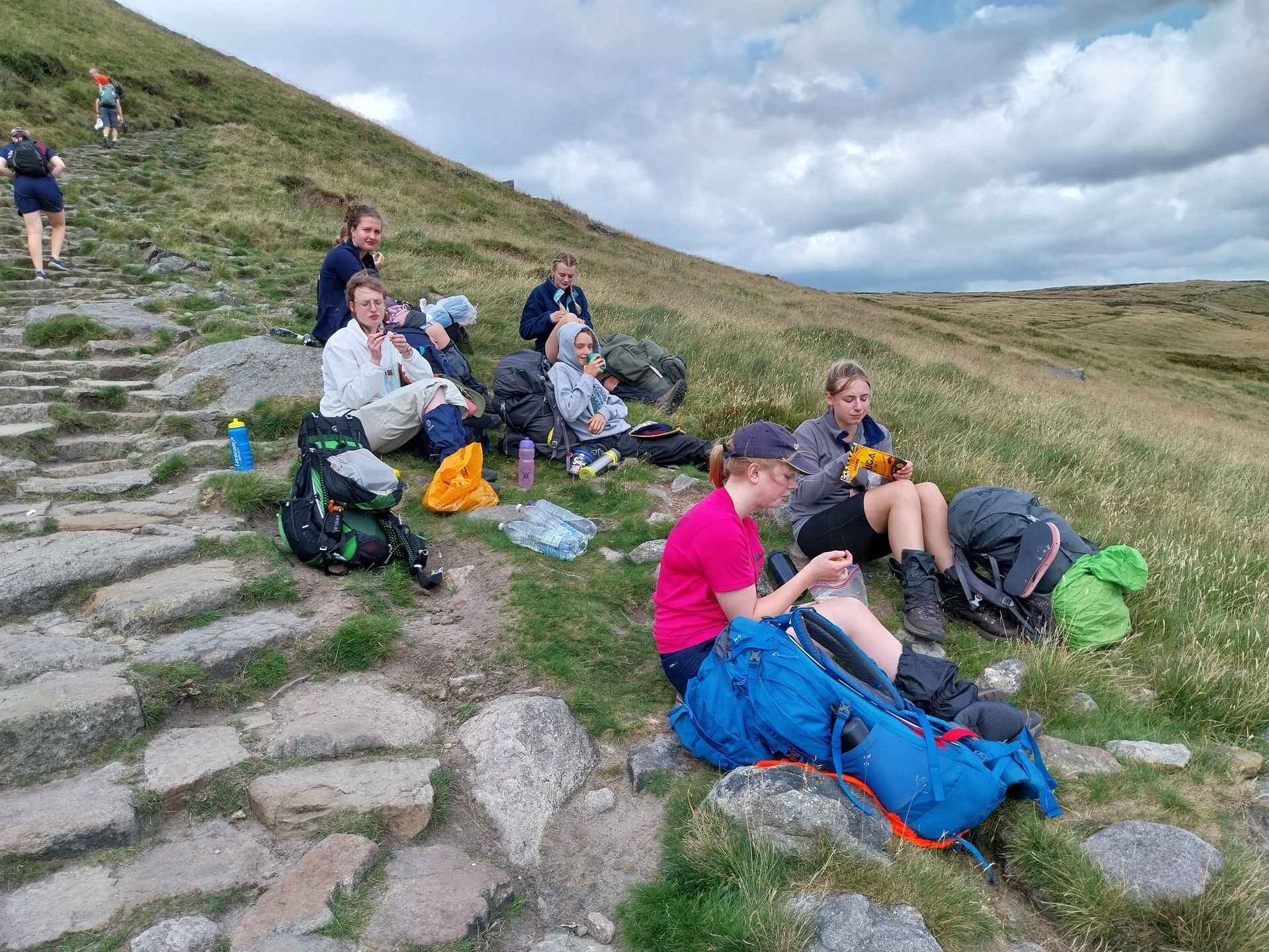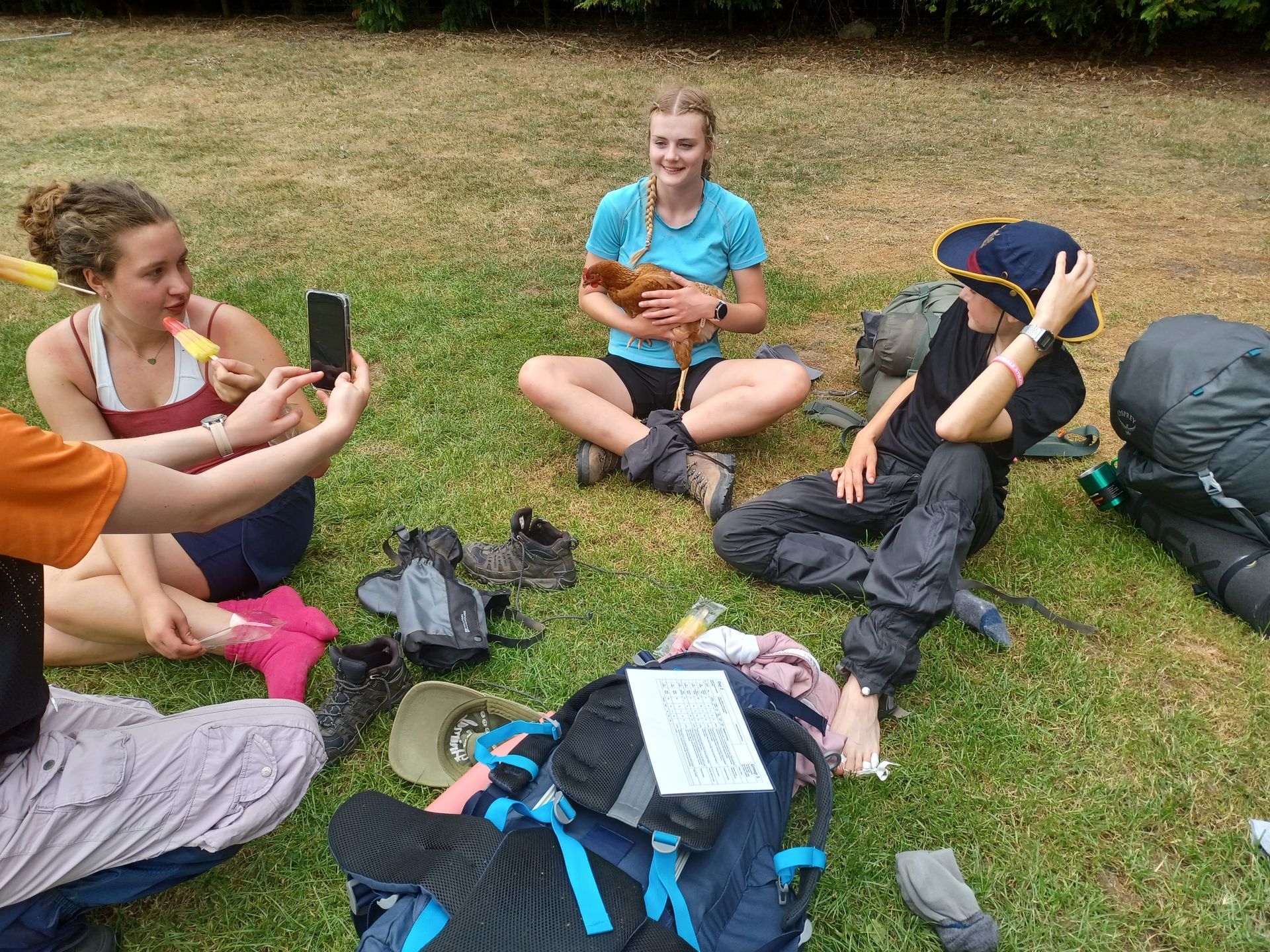 The fourth group arrived and the first groups returned to Norwich. The training was repeated with a short walk to refresh and learn navigational skill, followed by some first aid training. The next day the group walked to their next campsite, where they adopted an 8th member which you can see with the team below!