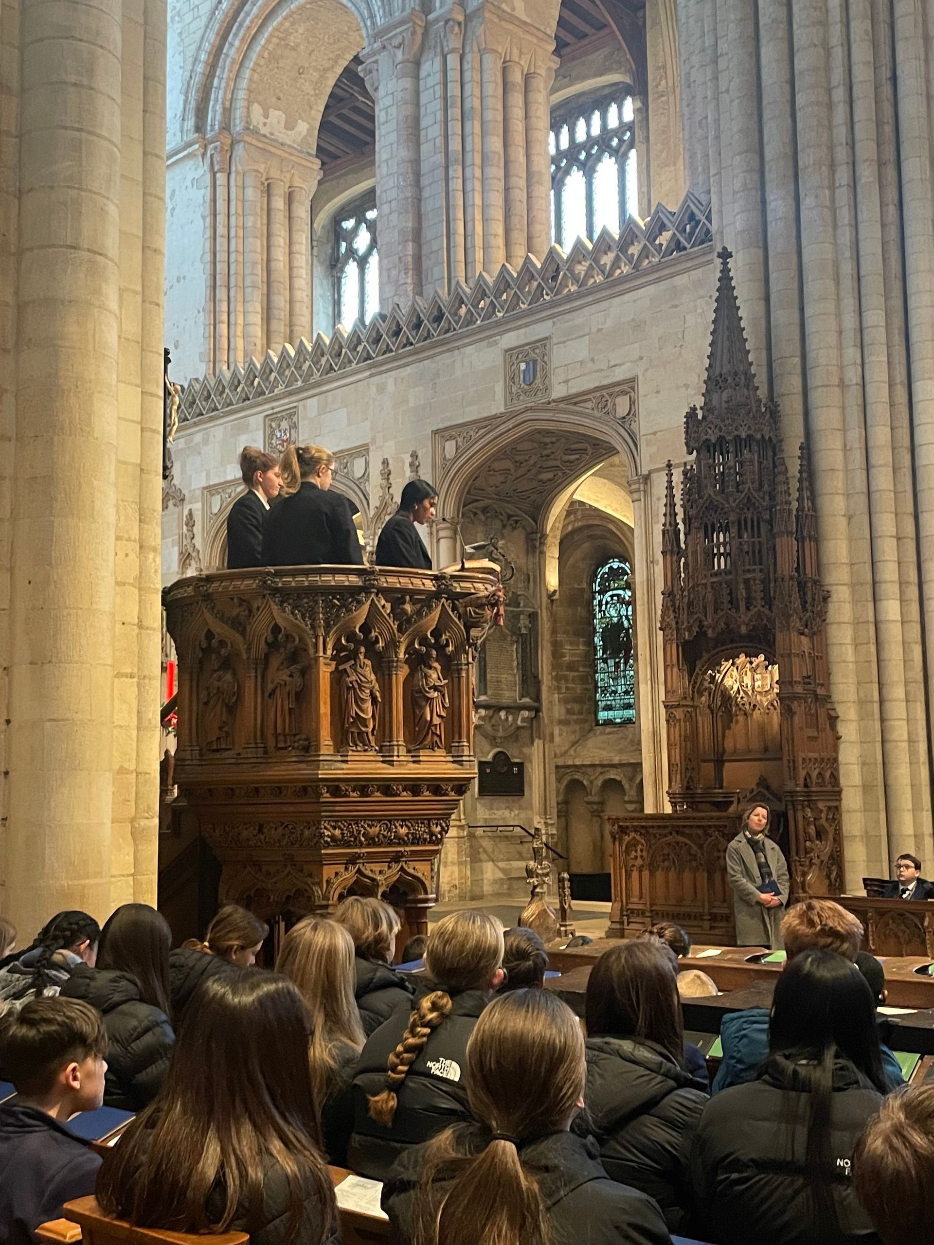 Following on from enrichment sessions in the Michaelmas Term all about libraries, Fourth Form scholars visited the Norfolk and Norwich Millennium Library for a lunchtime session. We admired a wide range of items from the library’s heritage archive collection before a discussion focussing on the Kelmscott Press and William Morris’s rejection of the mechanisation of the industrial revolution towards the Arts and Crafts movement and then compared this in particular to another book from the 1400s. It was fascinating to discuss the role of physical media and how creators are pushing back today in an increasingly digital environment. We went on to discuss pupils’ impressions of what role libraries play in today’s society and the experts at the Millennium Library added their own thoughts. Pupils were keen to explore the shelves and the digital archive but lo, it was time to return to school for our afternoon lessons. We all left feeling full of anticipation to visit the Millennium Library again as soon as possible to explore everything it has to offer with a newfound understanding of its heritage and value in today’s world.