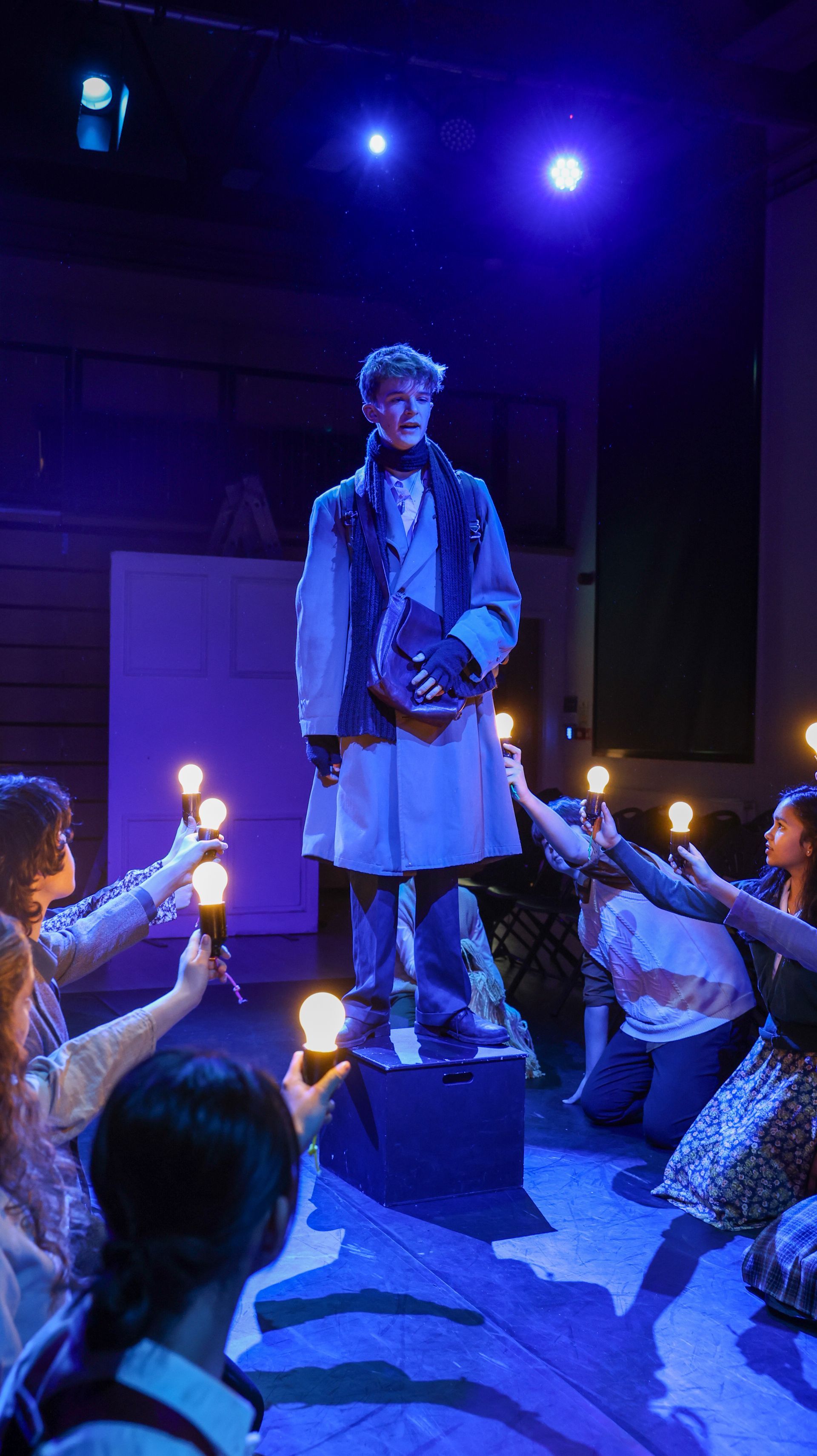 This Christmas tale was brought to life with great skill, particularly through the characterisation and dynamic between protagonist and antagonist – Cole Hawkings and Abner Brown. Kay Harker, played by Rowan Kidd, compellingly led the story and engaged audiences throughout, supported brilliantly by Christina Sawh and Alejandro Olmo Ochoa who played Maria and Peter respectively. Of course, the performance’s success must be attributed to every cast member, all pupils performed with professionalism and finesse.