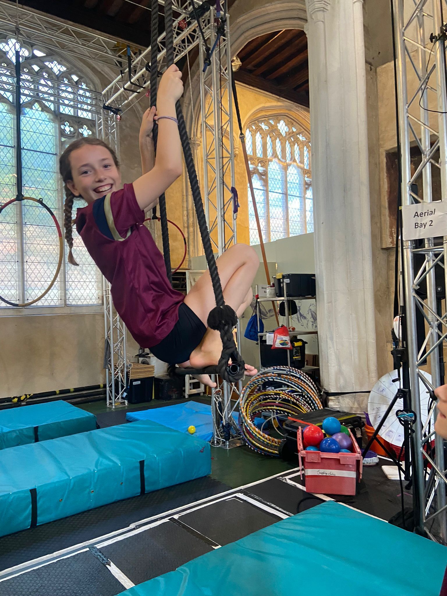 We covered tumbling, acrobatics and tricks, all of which we could apply to our dance. It was also exciting trying something completely new, as we got to use the hoops, trapezes and tightwire. Although much of this was outside our comfort zone, especially when we struggled with coordination in juggling, I definitely gained from this fun experience – thank you to the staff at Oak Circus for their excellent, energetic and friendly coaching!"
