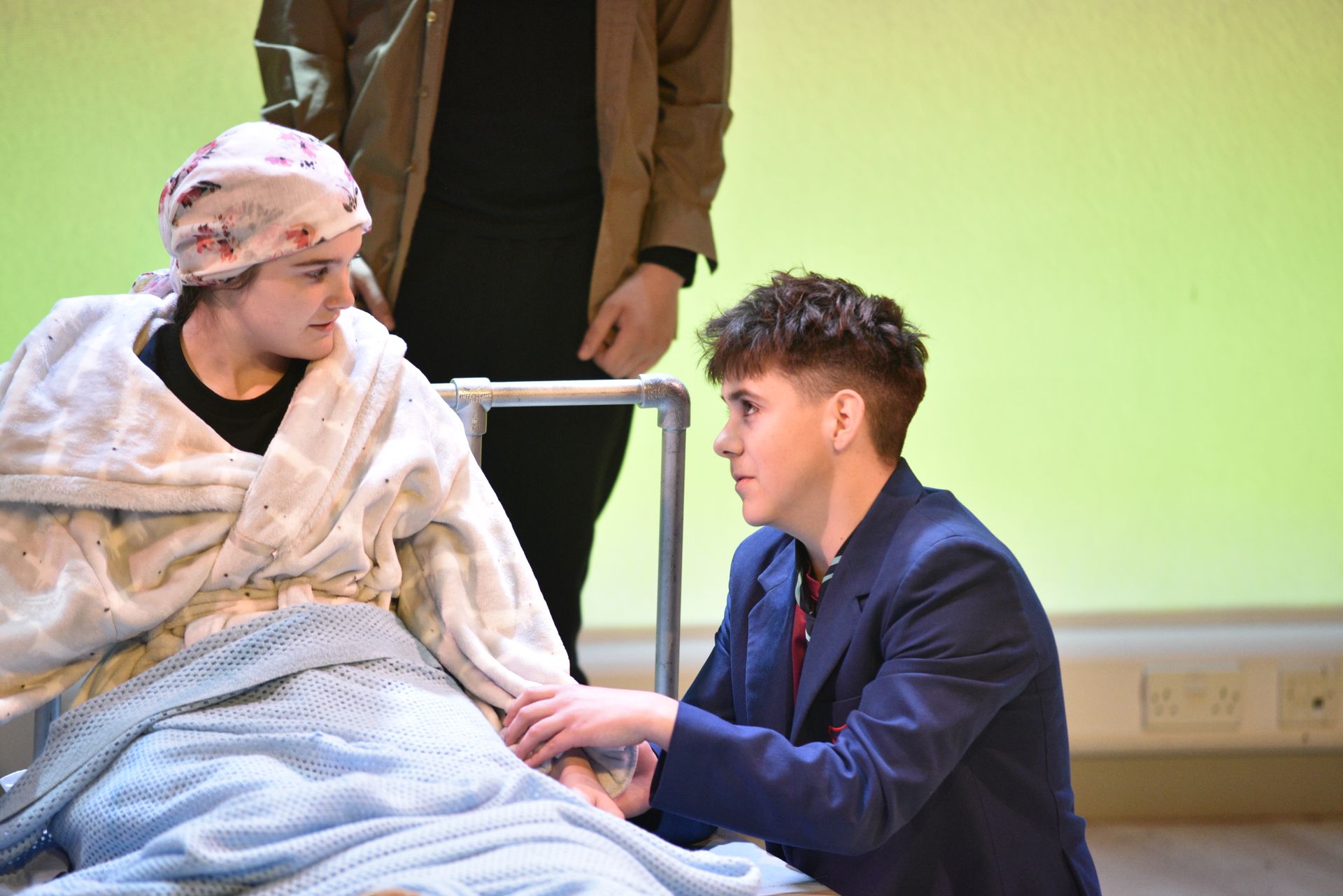 The night ended with A Monster Calls by Patrick Ness and Siobhan Dowd. The play told the story of Connor, played by Joseph Ladbrooke, a boy who is visited by a monster in the form of a Yew tree when his mother is dying of cancer. The cast used physical theatre, multi-rolling and strong characterisation to move the audience swiftly through every setting and experience as well as embracing the use of lighting and sound to bring this vivid theatrical experience to The Blake Studio.