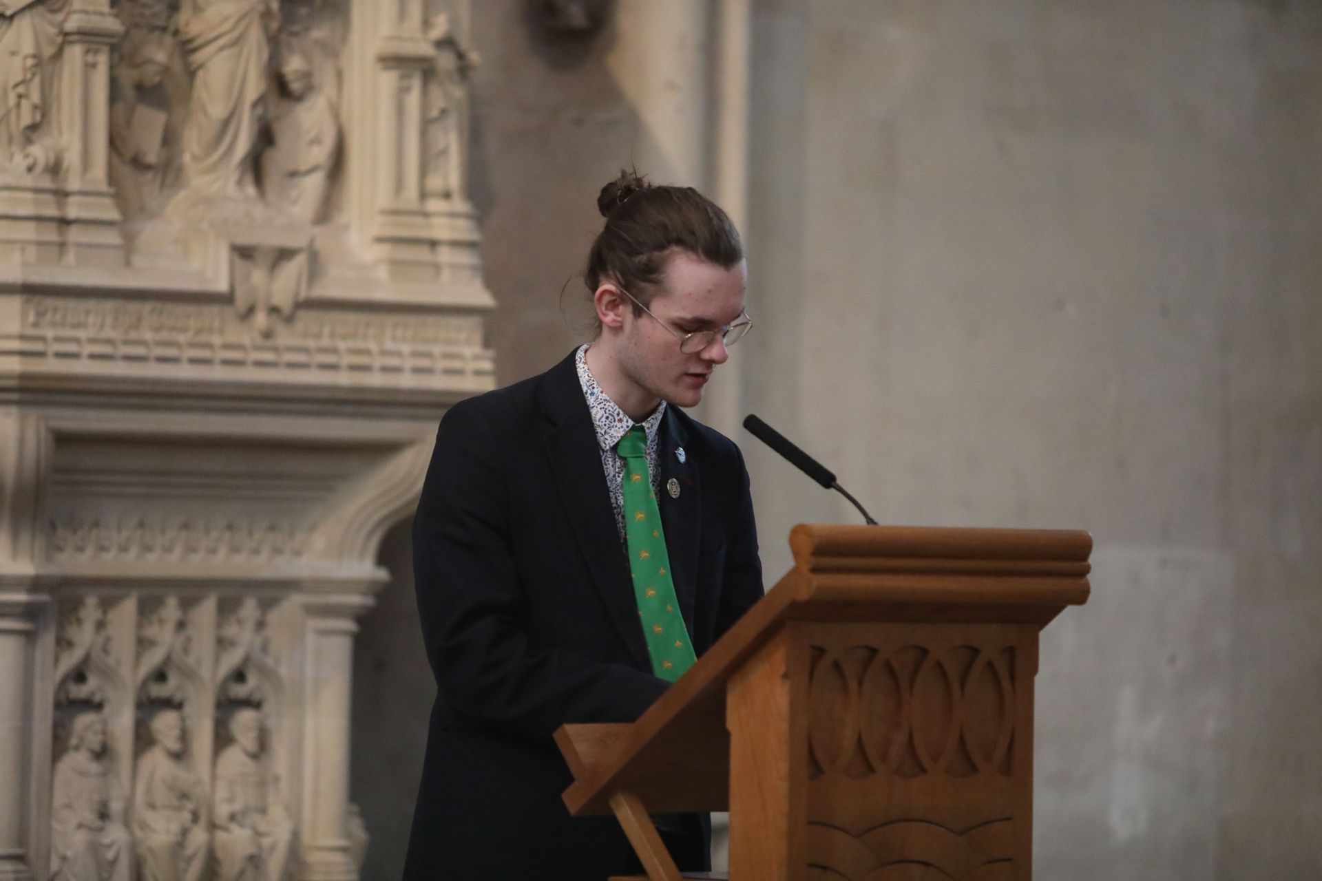 "Good morning. My name is Jonathan, I am in U6 and I have followed Christianity for around a year now and it has completely changed my life. The most significant change is having a God who loves and cares about me to look to in difficult times.