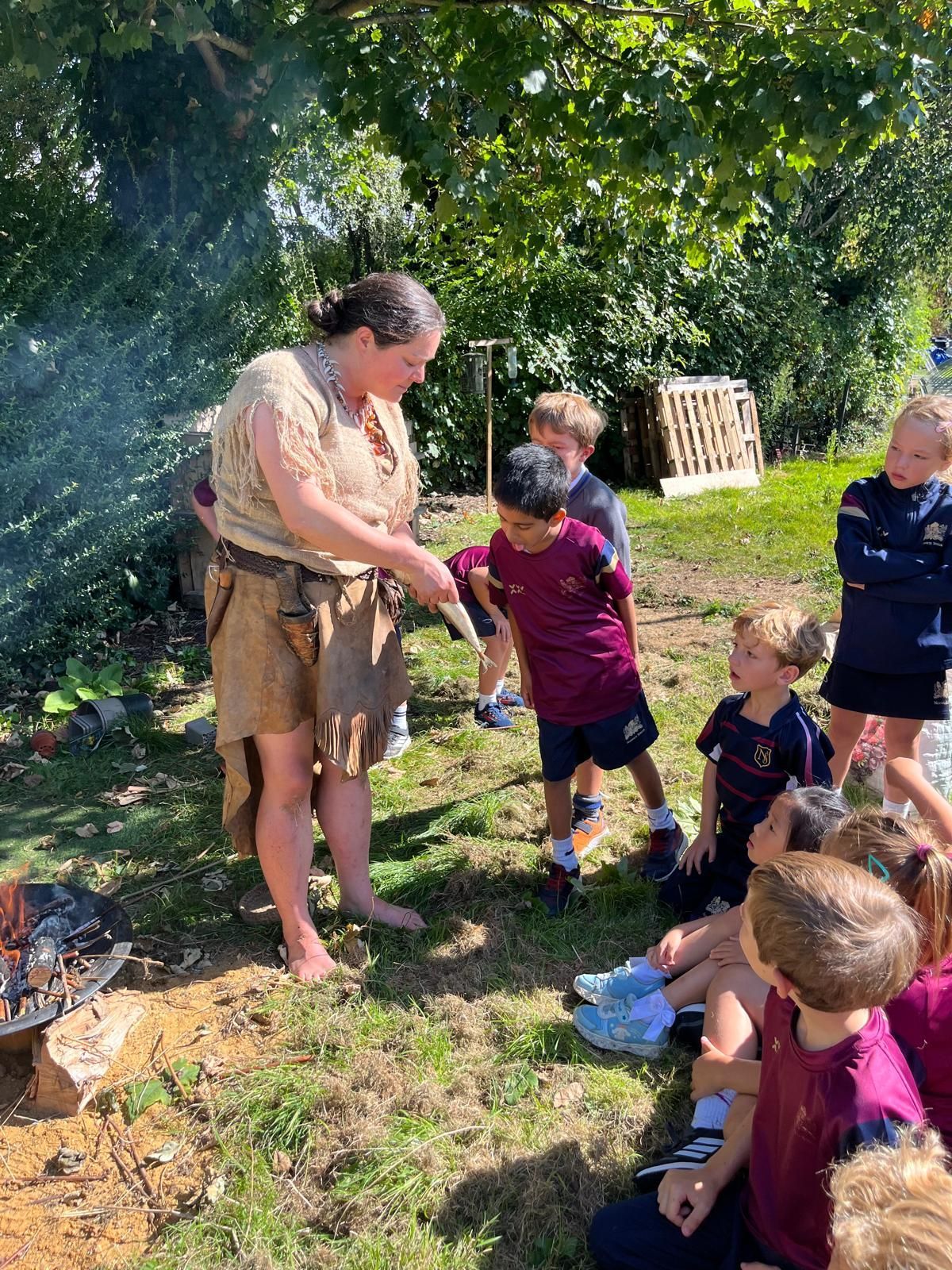 They built a fire, cooked fish over it, which they all then tried, and some even bravely tried the eyeballs! Using tools and instruments made from bone, the children thoroughly enjoyed the experience and are eager to continue exploring this era in their Topic lessons throughout the Michaelmas term.