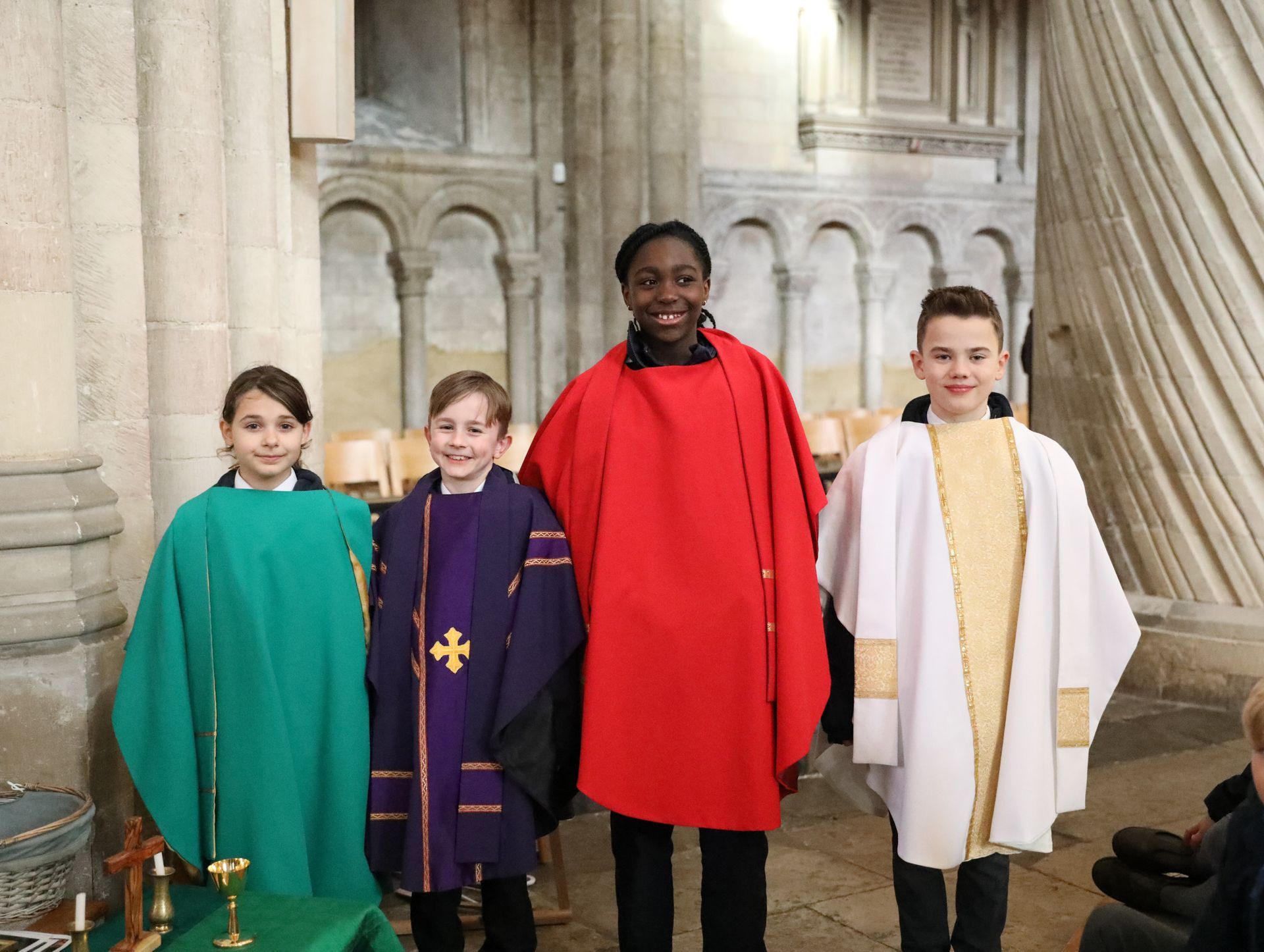 Following the introduction, the group split to participate in a series of engaging and interactive workshops. The first group explored the symbols of Baptism and Eucharist, gaining a deeper understanding of these important aspects of Christian tradition. Another group focused on the layout of the cathedral, learning why it is designed in the shape of a cross and the symbolic meaning in religious architecture. The final workshop offered an insight into the Cathedra – the Bishop’s throne – and explained how this special feature distinguishes a cathedral from a normal church.