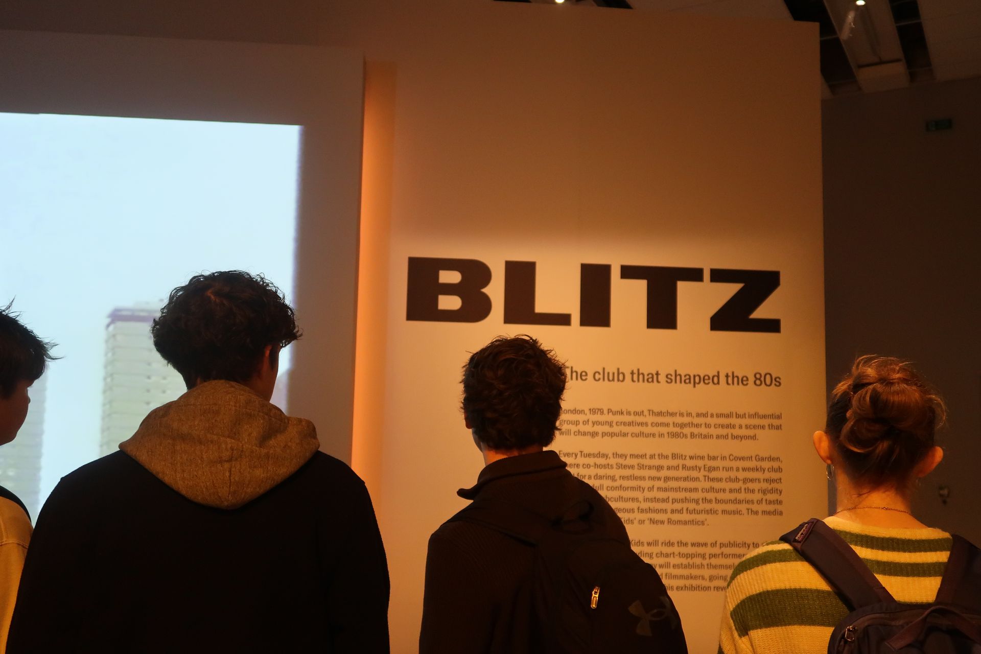 The first gallery we visited was the Design Museum, ‘Blitz: the club that shaped the 80s’, was one of the exhibitions we looked at, it was on how the Blitz nightclub completely transformed and reshaped many art and creative forms physically and socially, as well as also creating a post-war welfare state.