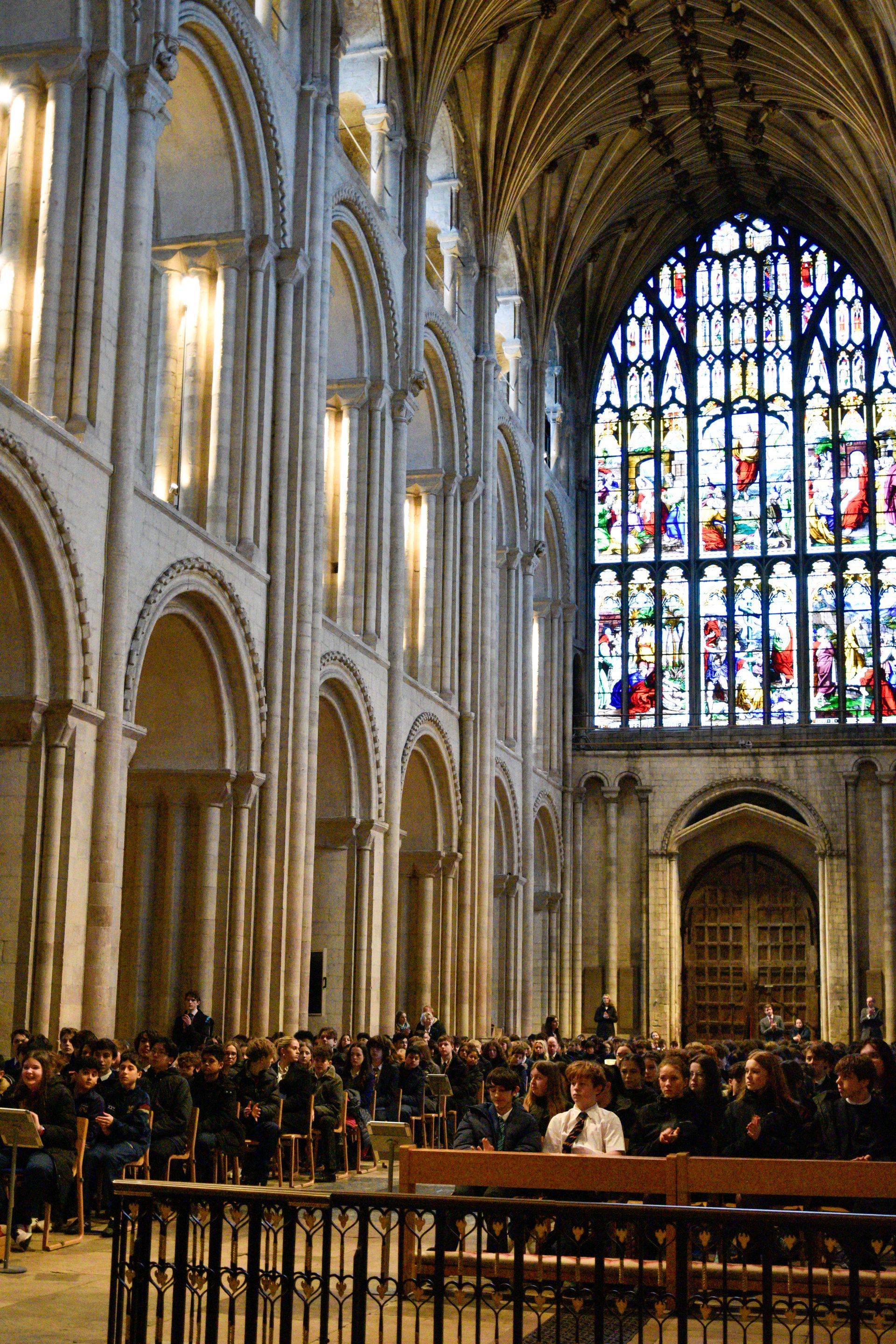 On Tuesday 10 February, Lower Twos visited Norwich Cathedral for a morning of rich, cross-curricular learning. The children explored the significance of stained-glass windows and how they were used to tell Bible stories to people in the past. They learned about the history of St Julian and their connection to Norwich and studied how key moments in Jesus’ life are portrayed through the cathedral windows. Pupils showed curiosity, asked thoughtful questions, and represented the school brilliantly.
