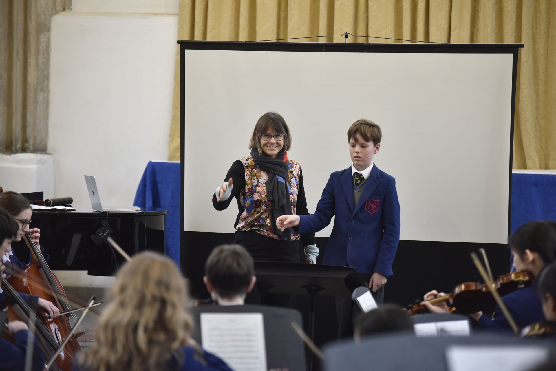 The Lower School’s Michaelmas Concert at the King’s Centre was a whirlwind of colour, confidence, and heart-melting musical performances. From plucky guitars to dreamy harp tones, the night showcased our wonderful young performers. The Guitar Ensemble set the tone with Corena Cracknell’s Bajito Samba, plucking their way through Latin rhythms with impressive focus. The toe-taps in the audience spread like a ripple—always a good sign—and the students handled the syncopations with style. Then the Infant Choir delivered a double bill full of charm - Orange and Yellow and Brown painted the autumn season with warm singing, followed by a wonderfully spirited Monster Stomp—suitably growly, adorably fierce, and 100% crowd-pleasing. Celebrating recent successes in the Concordia Recitals, 3 pupils were chosen to showcase their solo instruments starting with Moli Li on the keyboard, who dazzled with two Classical gems: Spiritoso by Clementi and Sonata in C Major by Kuhlau. Crisp phrasing, calm poise, and beautiful musicality. Next was the Reception Choir who took us to France with some traditional tunes: Un, Deux, Trois, Sur le pont d’Avignon and Frère Jacques. Delivered with bright eyes and sung entirely in French, each piece was sweeter than the last. The String Ensemble then took to the stage and brought a wider emotional palette, with Golden from K-Pop Demon Hunters—a sleek, modern contrast to the rest of the programme. Their expressive playing continued through every bar, showcasing impressive maturity for such young string players and also highlighting some impressive solo playing from Phoenix on the Violin and Max on the Cello. Another of our Concordia recitalists, Harpist Georgia Cornell Du Houx offered a serene contrast with Jeremiah Clarke’s Chaconne before filling the hall with glistening textures in The Flower Duet by Delibes. A truly magical moment—audiences leaned in as if the Harp itself was casting a spell. The Lower 2 Little Voices group lived up to their name and lit up the stage with Happy Song —a bright, bouncy number complete with air guitars! A real crowd pleaser! Our final Concordia pupil Betsy, played with crisp articulation and elegant control on the keyboard, bringing Germaine Tailleferre’s Sonata “All Scarlatti” to life with stylish flair, followed by a tender and lyrical rendition of Alexis Ffrench’s Last Song. A beautifully balanced pairing. Moving into pop territory, the School Choir delivered a heartfelt version of the classic Time After Time with some beautifully blended harmonies and a spirited version of the Foo Fighters’ Learn to Fly. Voices were warm and full, and their enthusiasm was nothing short of infectious. Closing the evening with poise, the Chamber Choir offered a beautifully controlled performance of The Water is Wide, followed by the up-tempo Scottish Riddle - full of tongue twisting brilliance! A perfect finale to a wonderful evening of music making. From thundering tiny monsters to shimmering harp lines, the Lower School Michaelmas Concert was a glorious showcase of talent and pure joy. Whether it was a first stage appearance or a seasoned young musician polishing their craft, every performer contributed to a heart-warming evening that left families beaming and teachers glowing with pride.