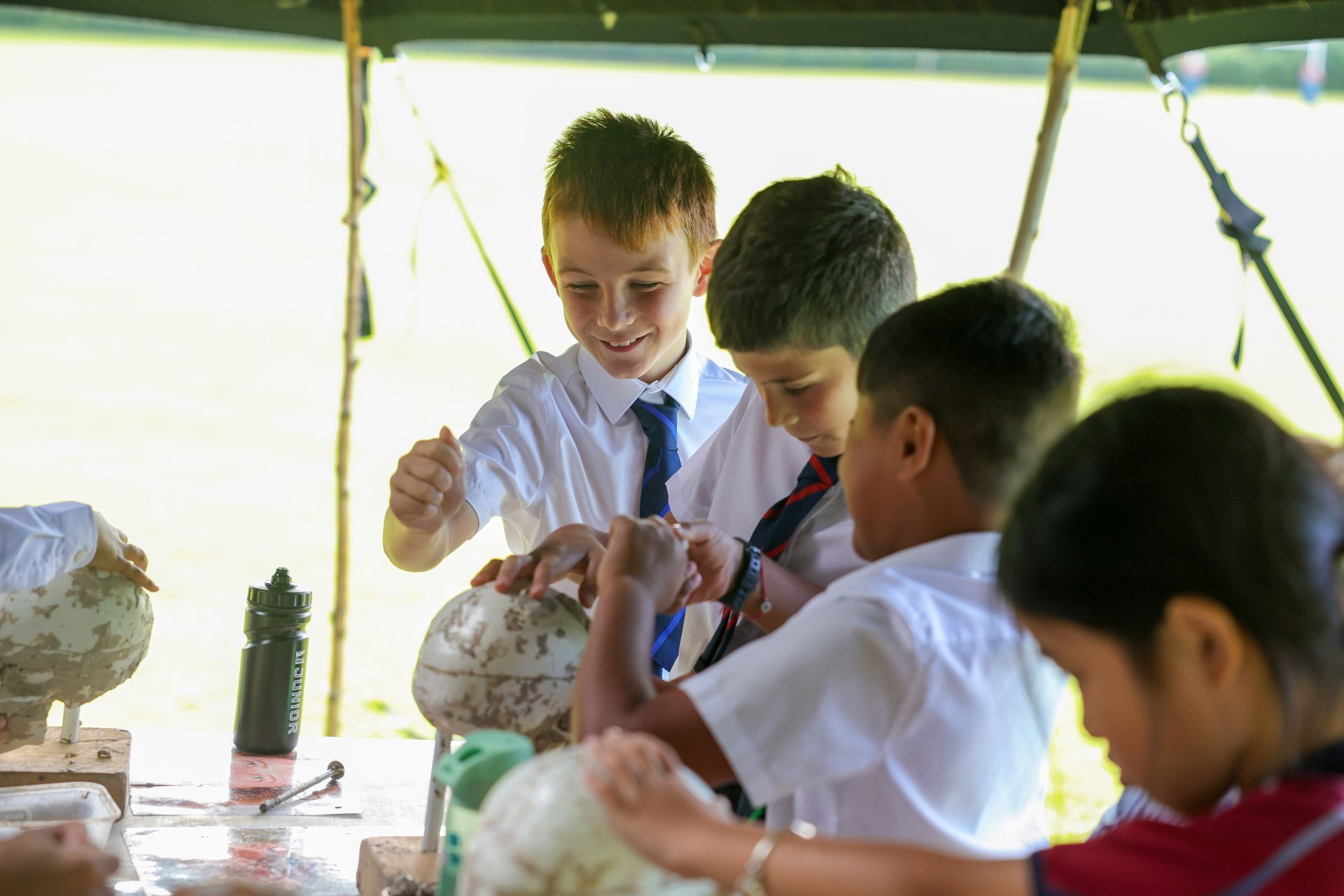 On Wednesday 10 September, Upper 2 put their detective hats on and went in search of some clues to reveal the past. They entered the tent and were met by the resident archaeologist. Pupils were excited to share all that they have learnt about primary and secondary sources of evidence and couldn’t wait to get ‘stuck in’ to digging for evidence themselves. There were three ‘trenches’ with evidence buried under either sand or soil. After being taught how to ‘dig with brushes’ and record their findings, they began to explore the contents of their trench. It felt as though they were on real-life archaeological digs, with each group discovering clues and trying to piece together the evidence to decide what they had found. One group found a replica ‘bog body’ and delighted in coming up with theories about how the body had got there and who it was. One group discovered a neolithic butchery site and the third group found such a wide range of artefacts, including pottery and sewing materials, that they decided it must have been someone’s house. The pupils also learned about the process by which archaeologists can reconstruct the facial features of a person when they have found their skull. They worked well in pairs to think about where the muscles would be and what shape the person’s nose would have been. Below are some thoughts from pupils that they would like to share! 'Today was fascinating!' - Lois 'The workshop was fun; they told us amazing stories!' - Arthur 'Today was fun, if only there were dinosaur bones to dig up as well!' - Ralph