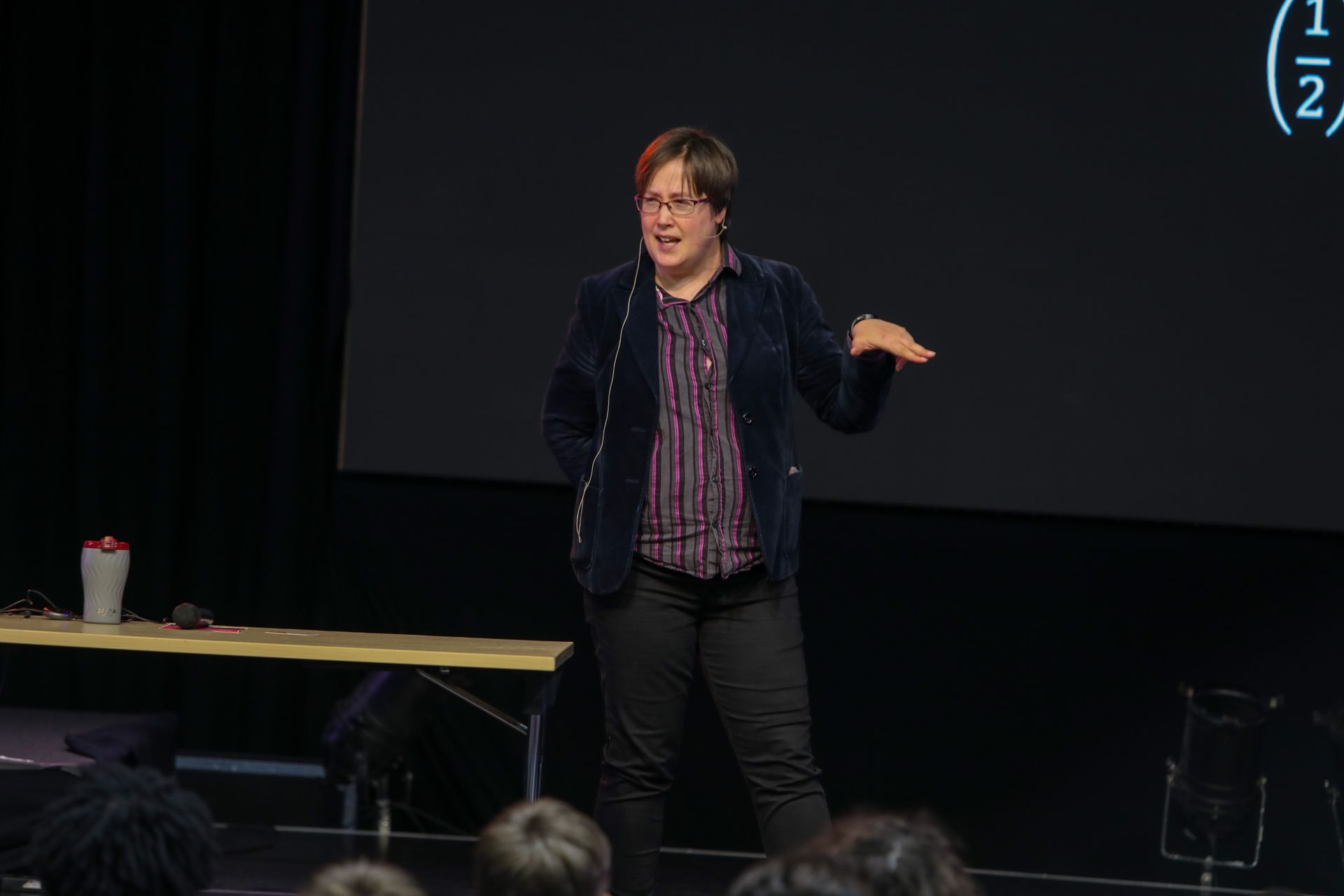 Pupils were treated to lectures on probability and risk from Alison Kiddle, including an incredible re-telling of her time on Who Wants to be a Millionaire, a fascinating explanation of the Lorenz WWII code-breaking machine and what it has in common with a Taylor Swift CD from James Grime (of Numberphile fame) and Zoe Elliott’s demonstrations of moebious loops and beautiful (mathematical) smoke rings above the audience’s heads. It really was a very engaging morning.