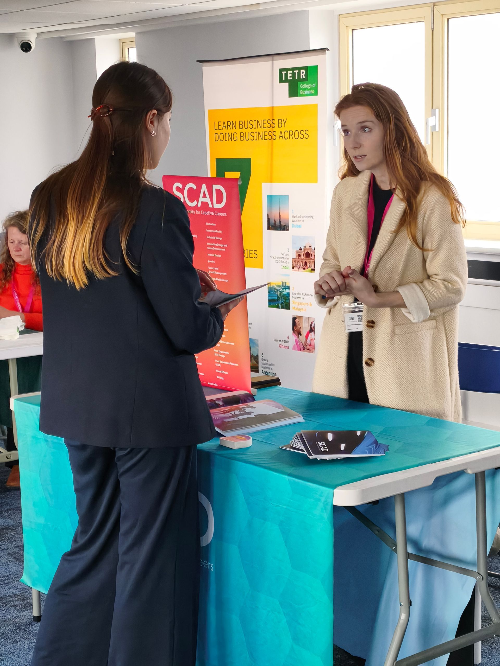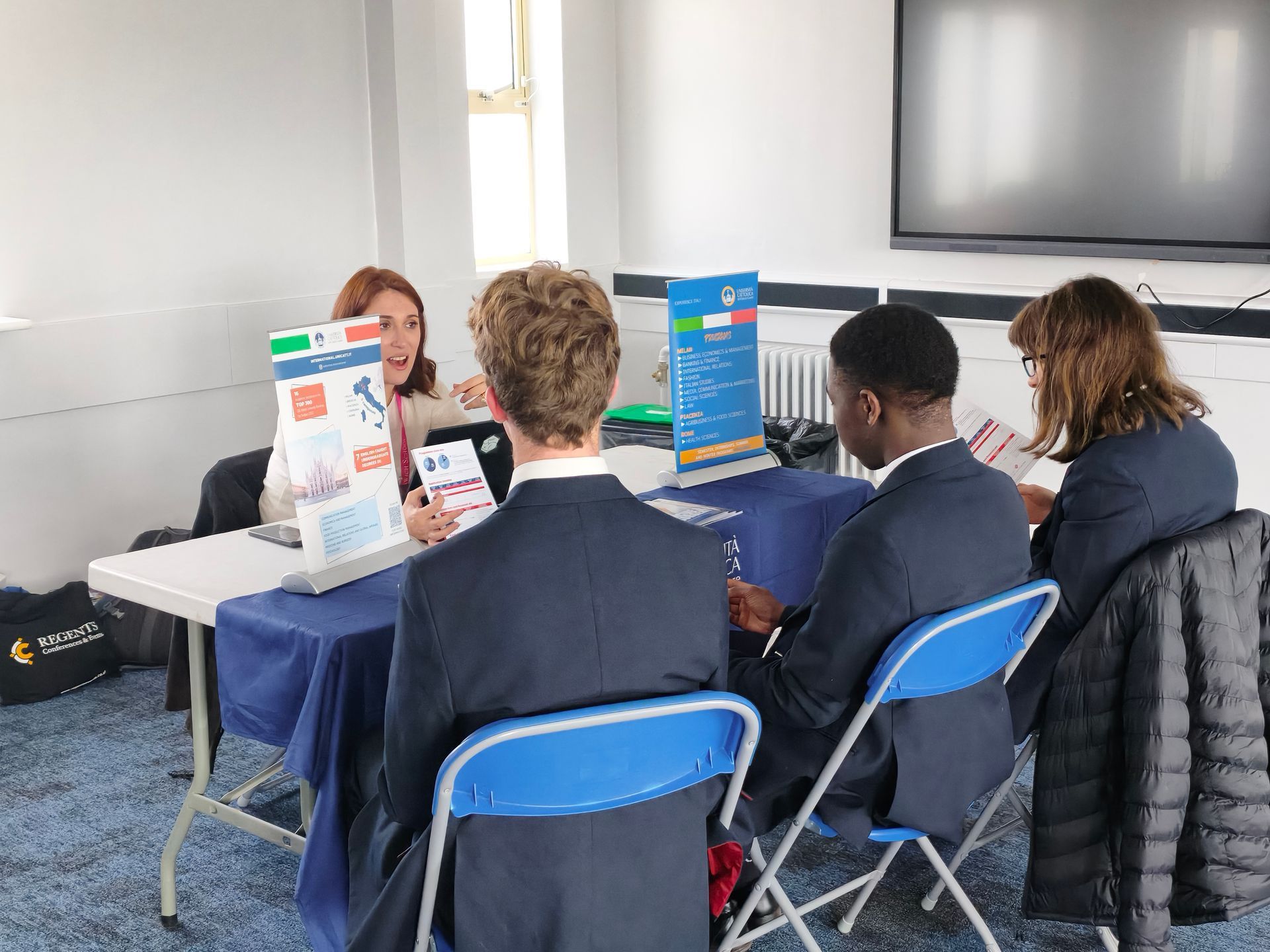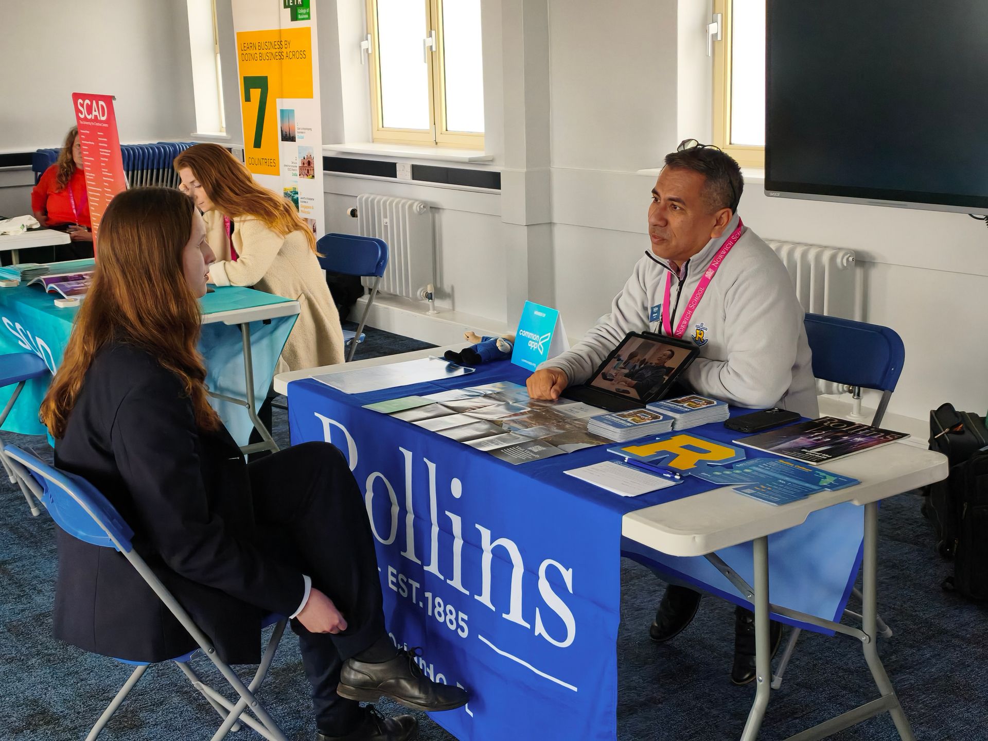The lunchtime fair allowed our pupils to interact directly with representatives from leading global universities namely, the Università Cattolica del Sacro Cuore offering medicine, business and other courses in English from Italy, Rollins (Florida) – one of the best small liberal arts colleges in the US, SCAD from Savannah in Georgia (the US’s largest art school) and TETR College of Business with its unique programme spanning 10 countries.  From talking one to one with the different university reps, our students got accurate and up-to-date information about courses, how to apply and they could also learn more about and campus life overseas. It was also a great opportunity for Mrs Warren, the school’s Head of UCAS and Mr Sims to find out more about opportunities overseas and to build their own connections.
