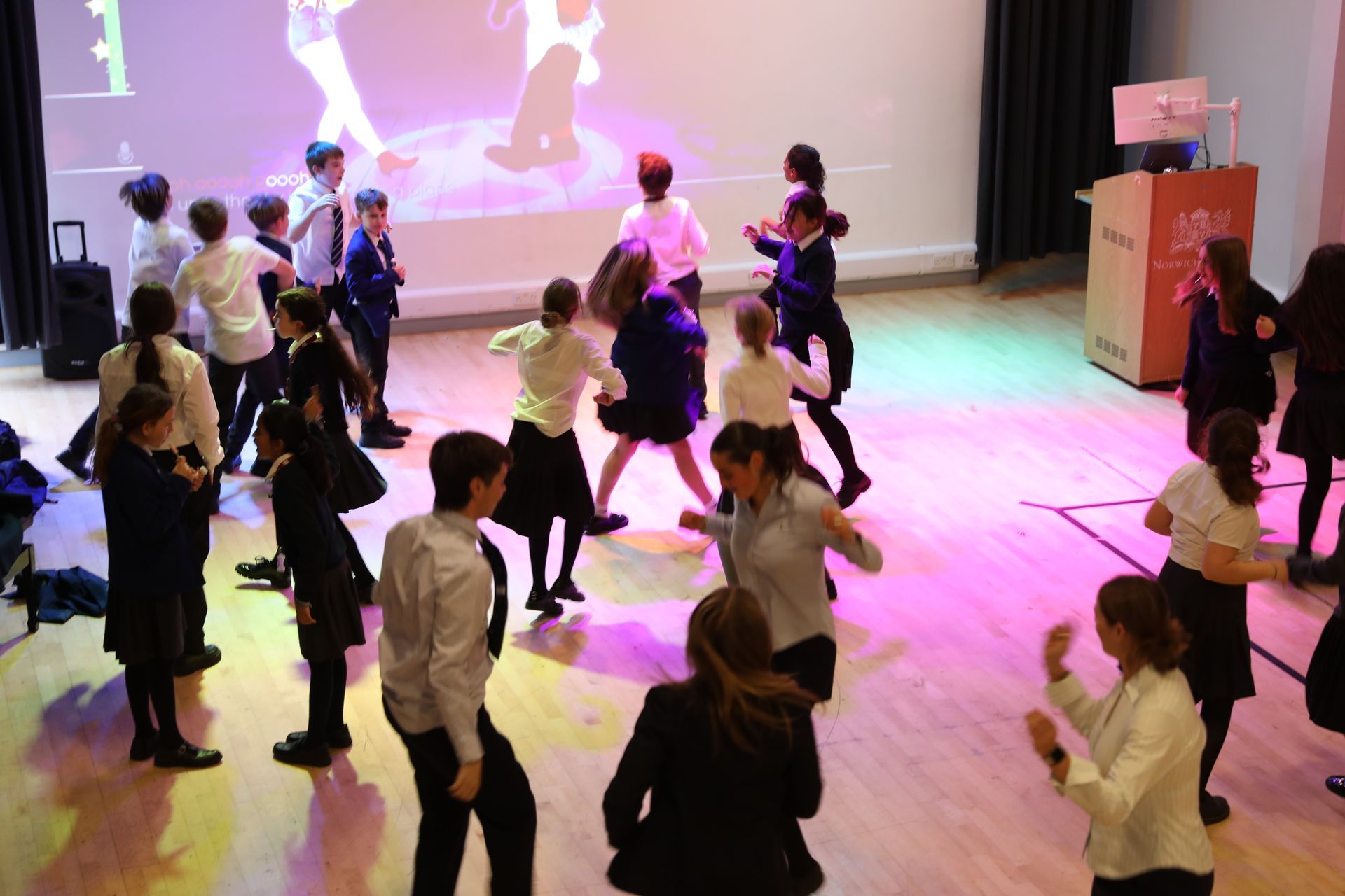 The Week of the 7 October was full of celebration in preparation for Norwich School’s Annual ‘One Norwich School Day’. On Tuesday 8 October, a Just Dance session was hosted in the Blake Studio during lunchtime for pupils throughout the Senior School. This was an opportunity for pupils from Lower 4 to Upper 6 to get active and have some fun together! The Blake Studio was brought to life with funky beats, colourful lights and pupils dancing to the YMCA.