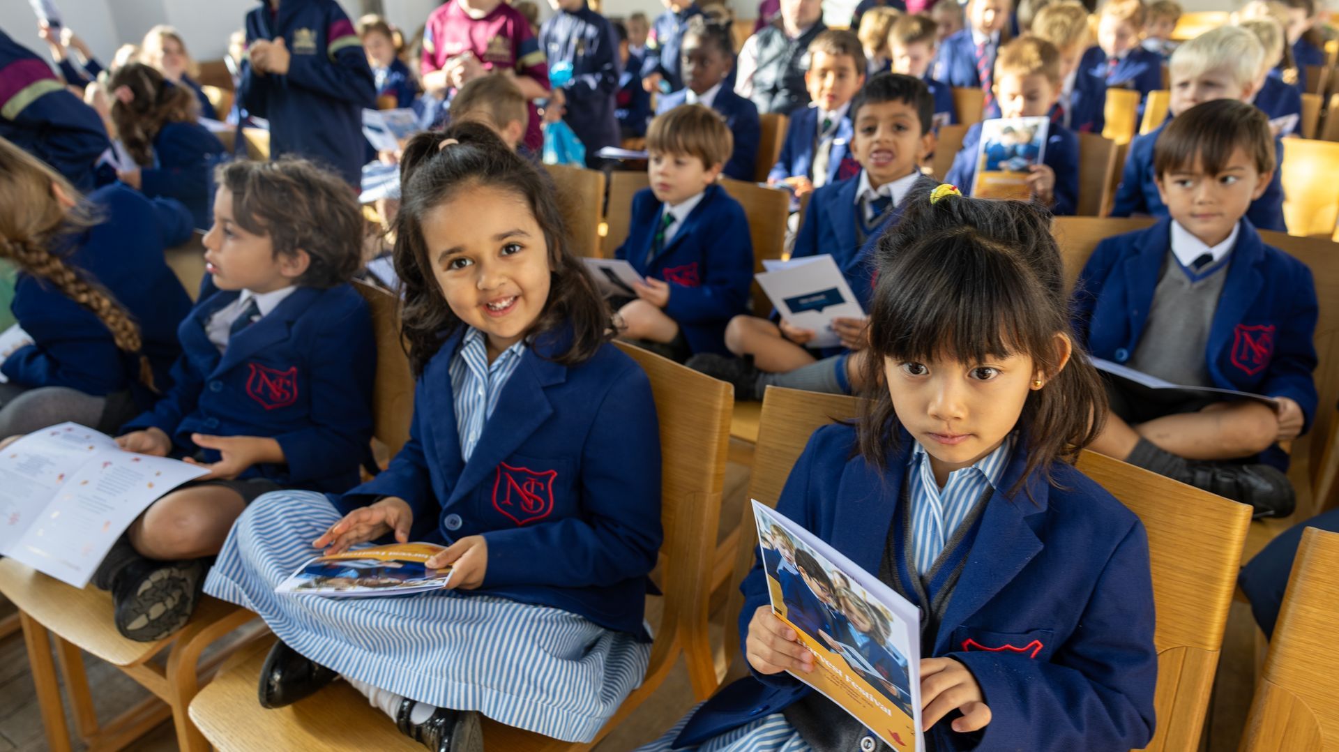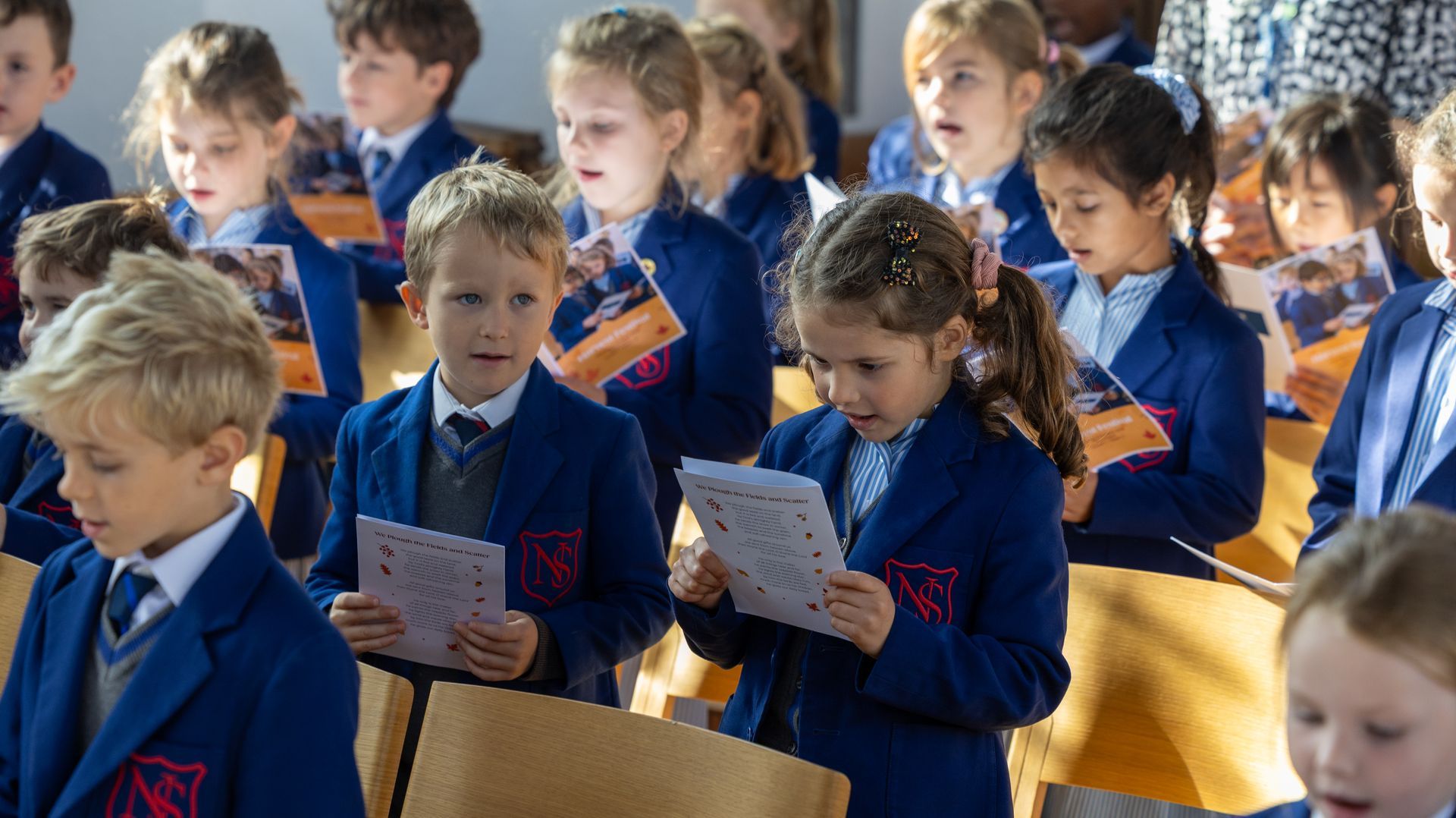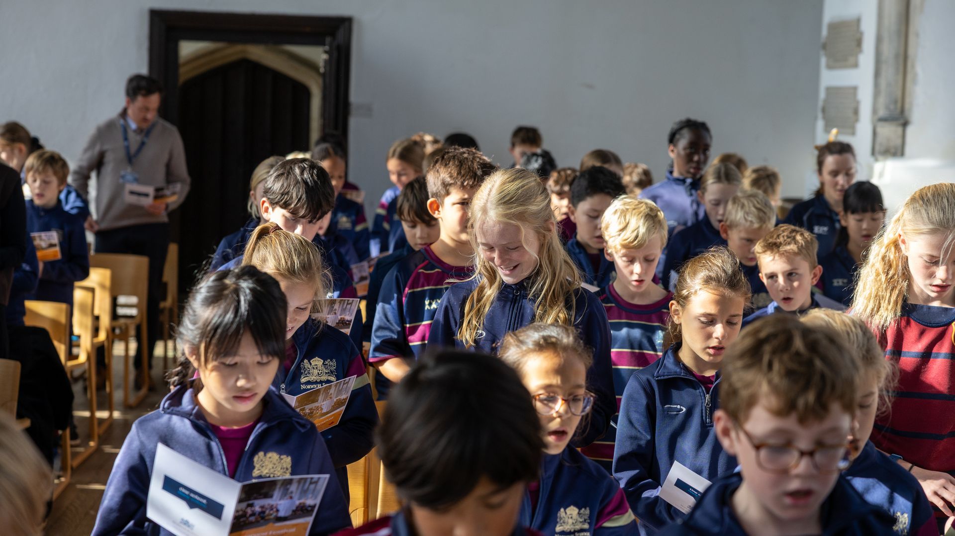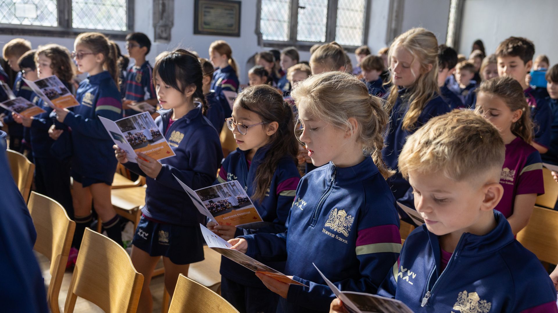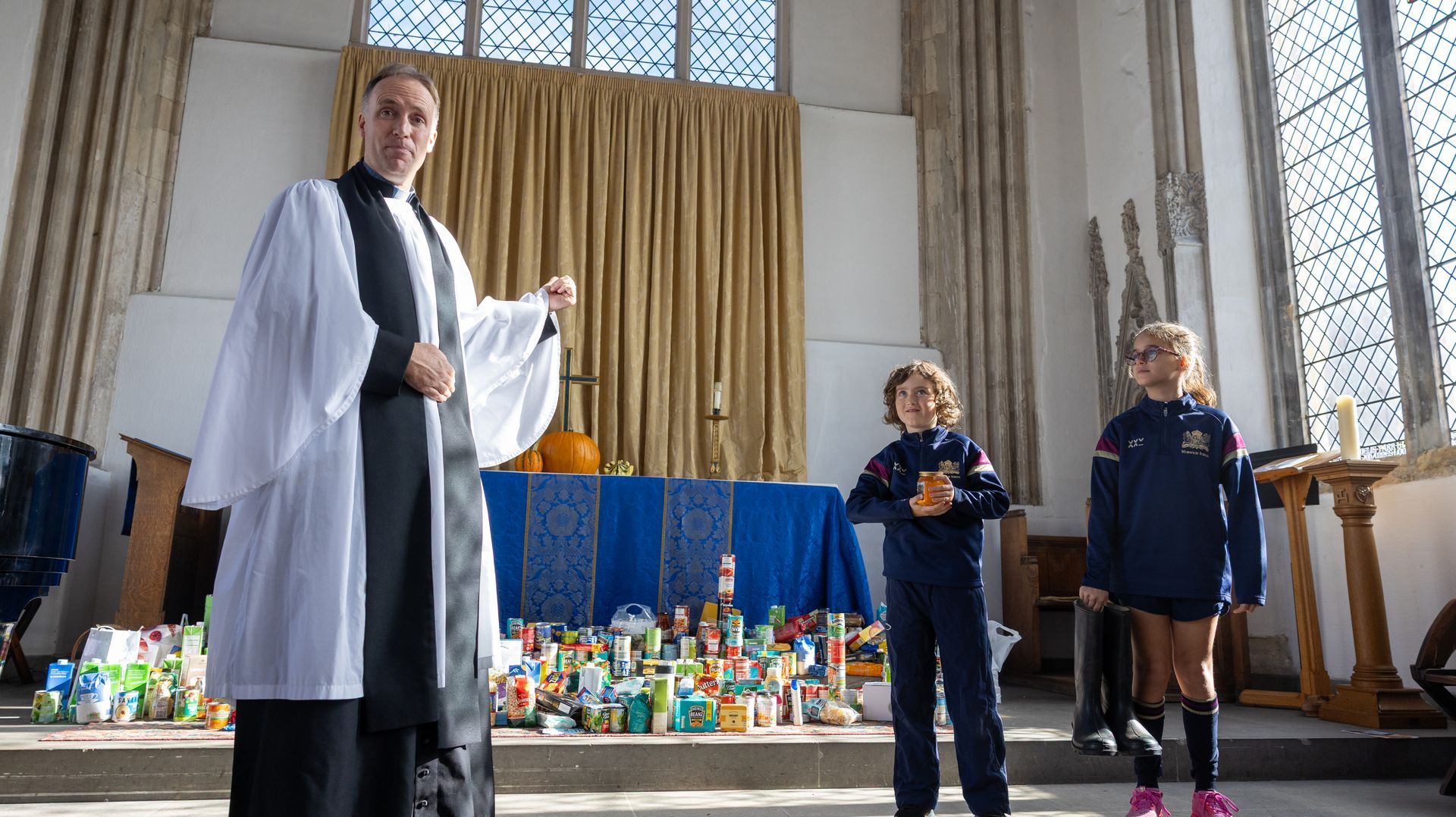 During the annual Lower School harvest service, Reverend Child invited pupils to place three symbolic items on the chapel altar. The first was a large pumpkin grown on the school allotment, an example of ripeness and a reminder of the many seeds which fruit and vegetables contain for future sowing. The second item was a jar of honey produced by bees in and around Cathedral Close – ingenious insects that we need to make sure we protect. The third item was a pair of wellington boots, a reminder of farmers who work hard, sometimes in difficult and dangerous conditions, to bring us our food. The pupils had lots of ideas about why these objects were important, and each of them brought food to donate to the Norwich Food Bank, which was also placed around the altar, making for an impressive display.