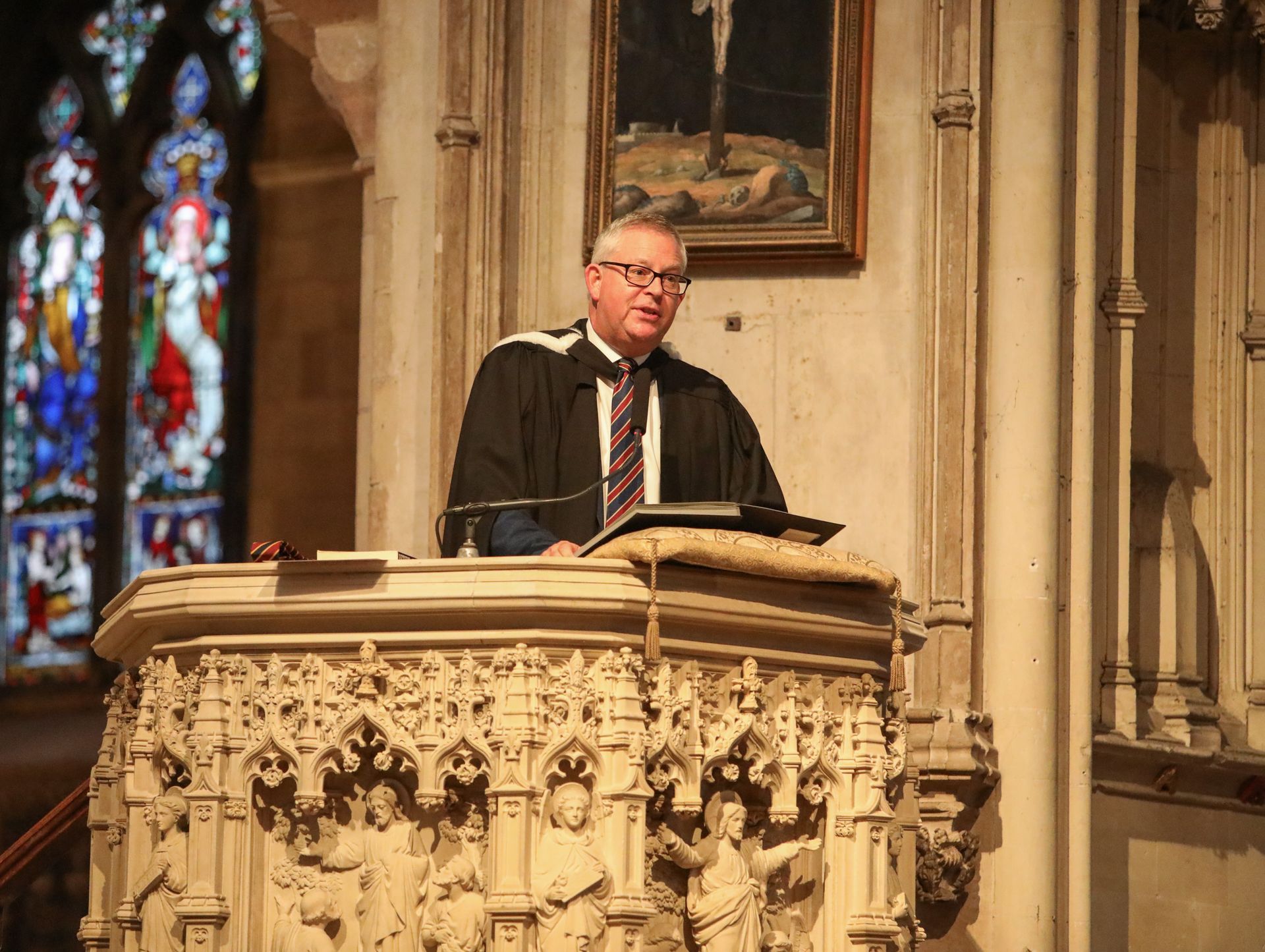 I have two examples. Feeling sorry for the meagre rations at lunch in the 1980s, he petitioned the Bursar and was successful in increasing food portion sizes, especially on Fridays when the number of fish fingers was increased by one on each plate, earning him the nickname of Four Fish Fingers Phil. More profoundly, the second relates to his increasingly frail health. Years of starvation rations had irreparably weakened his constitution and brought about the onset of the debilitating condition known as Parkinson’s Disease, causing him to retire early. At a time when pupil relations with teachers were often distant and subservient, at the end of his last ever assembly in this Cathedral I recall him warmly shaking the hand of every boy as they left through the great west doors. I was moved that he knew my name and wished me well with a tear in his eye. Recently I discovered that on his death he committed his body to medical research, allowing them to assess the impact of his war-time privations.