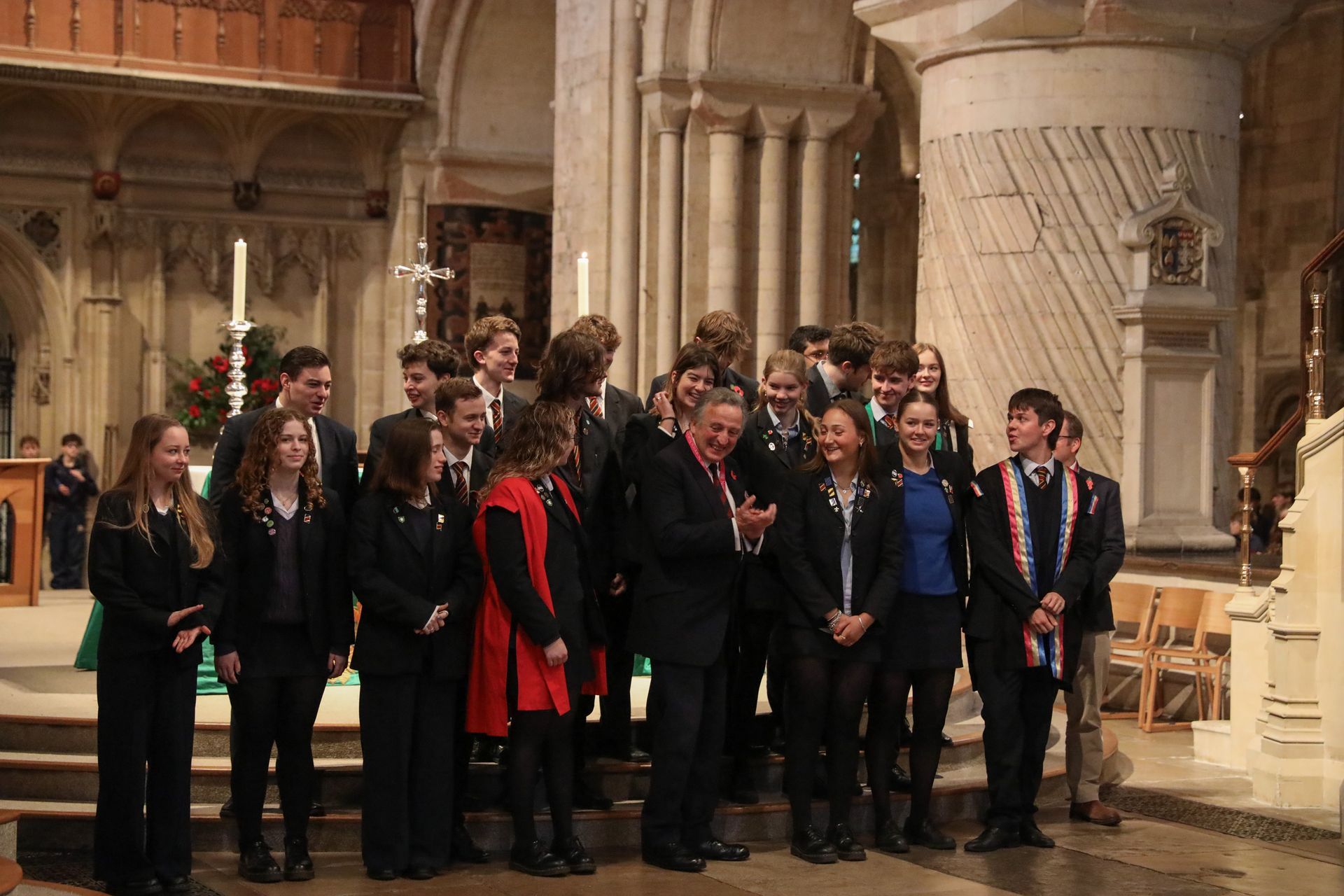 To conclude my address, if you see anyone round school wearing one of these ties or pins, do ask them how they earned their Stibbe Award. I hope you to will be inspired by their stories and aspire to receive this accolade yourself one day. To those wearing a Stibbe Award today, Giles and I salute you. You will have made an important mark on the school through your sterling efforts and continue to make Norwich School a better place. It is interesting to note that among the cohort of Stibbe recipients in school at present, is our very own Mr Gent who, as a schoolboy here, was one of its first ever recipients.