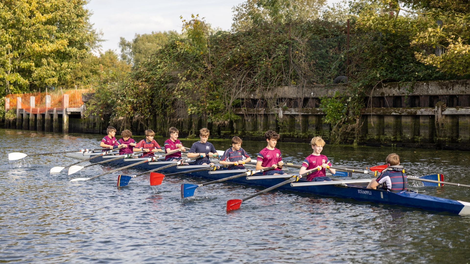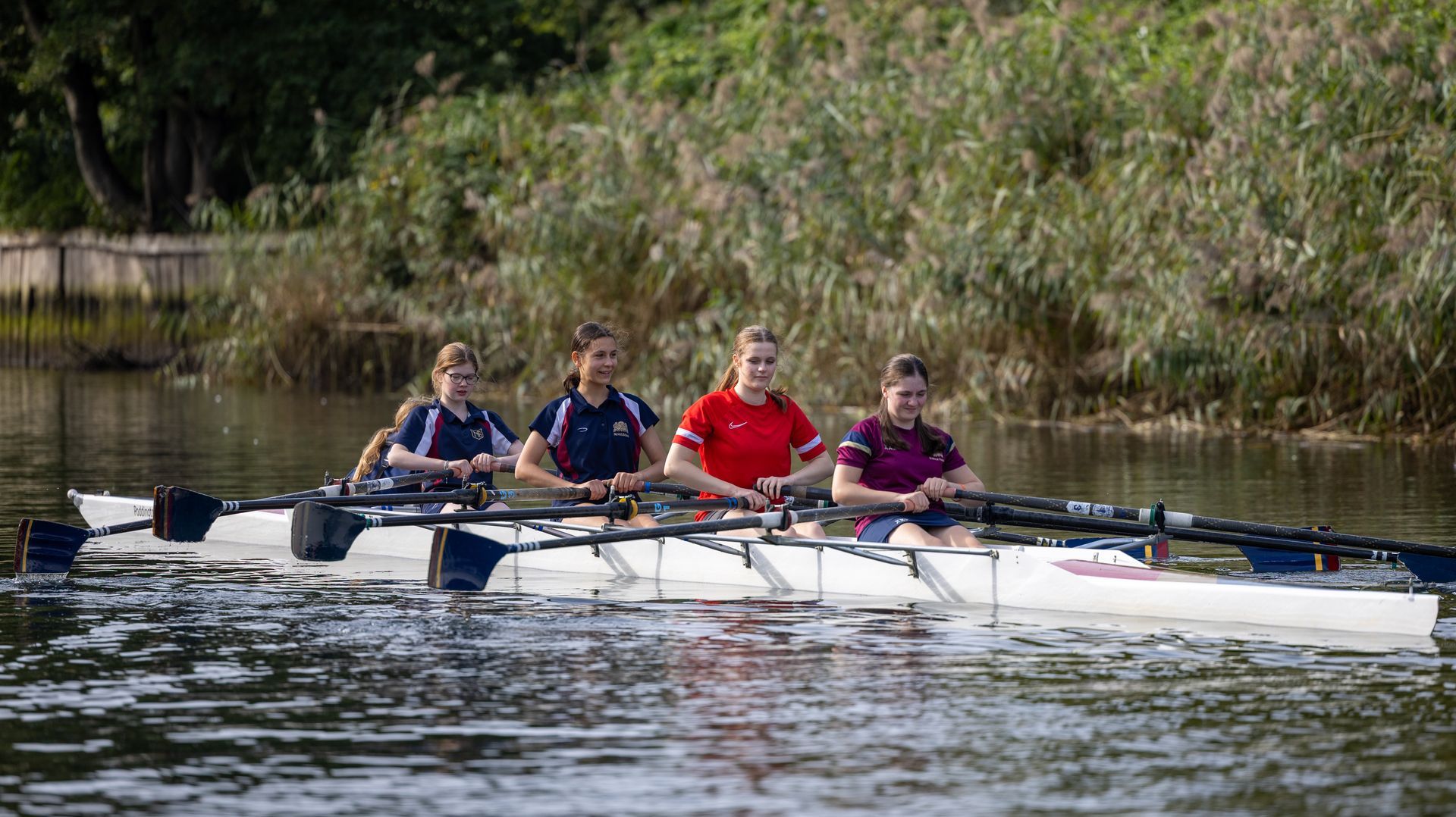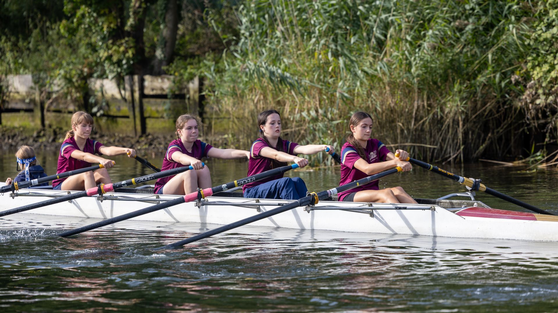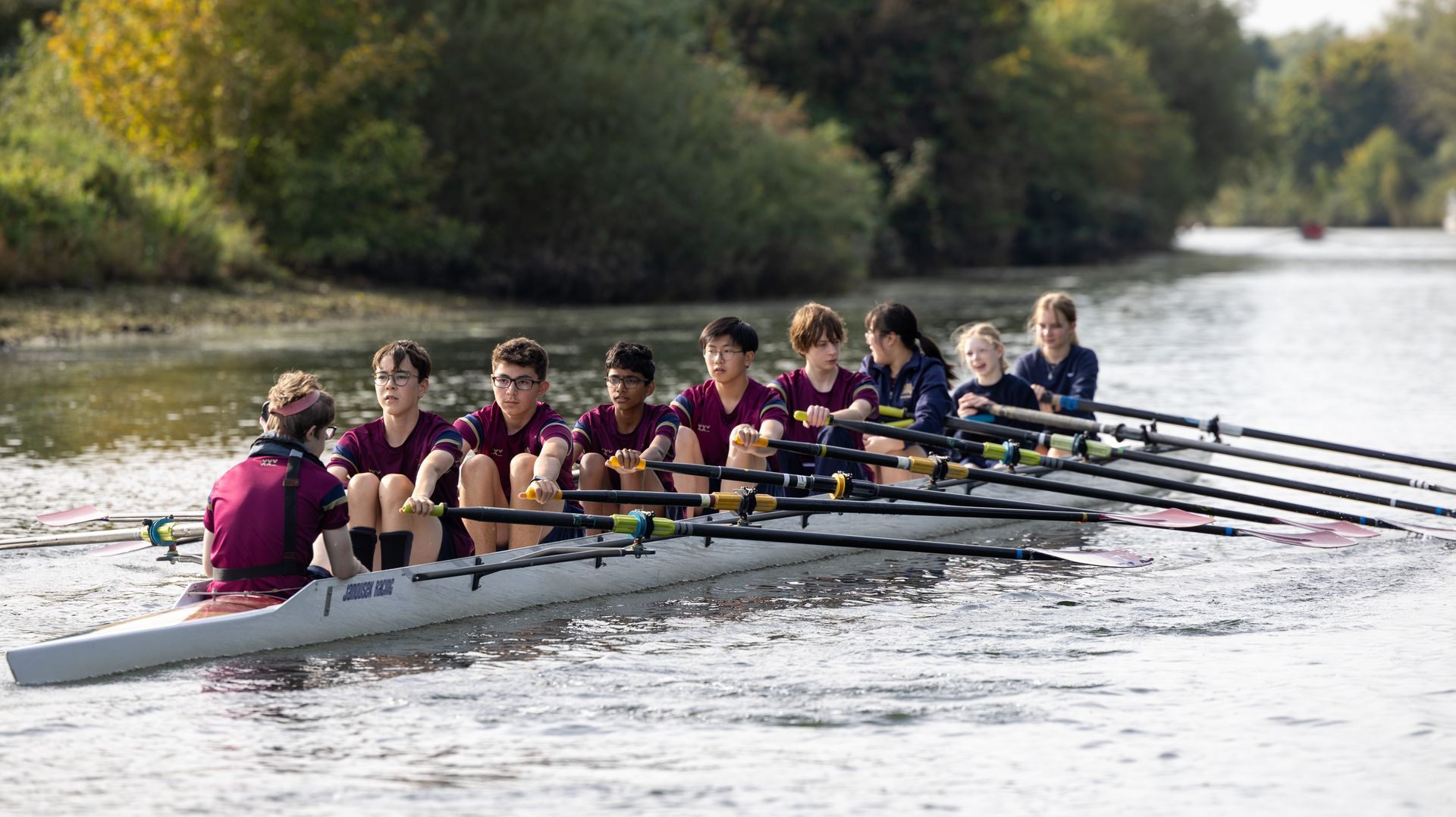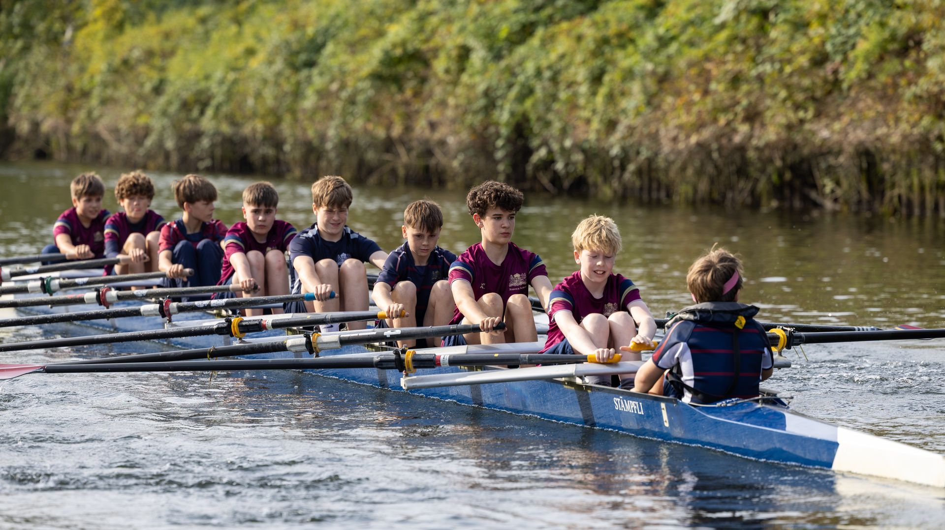This half term the Senior Rowers have been covering the miles in small boats, the J15s have all started sweep rowing and we have welcomed an enthusiastic J14 squad to the Boat Club. Despite some rather windy sessions the training has been going well. The first race of the year was at Bedford Small Boats Head. With 35 crews racing across six divisions, there was tough competition across all boat categories. We finished the event with 6 crews in 2nd place and four wins: