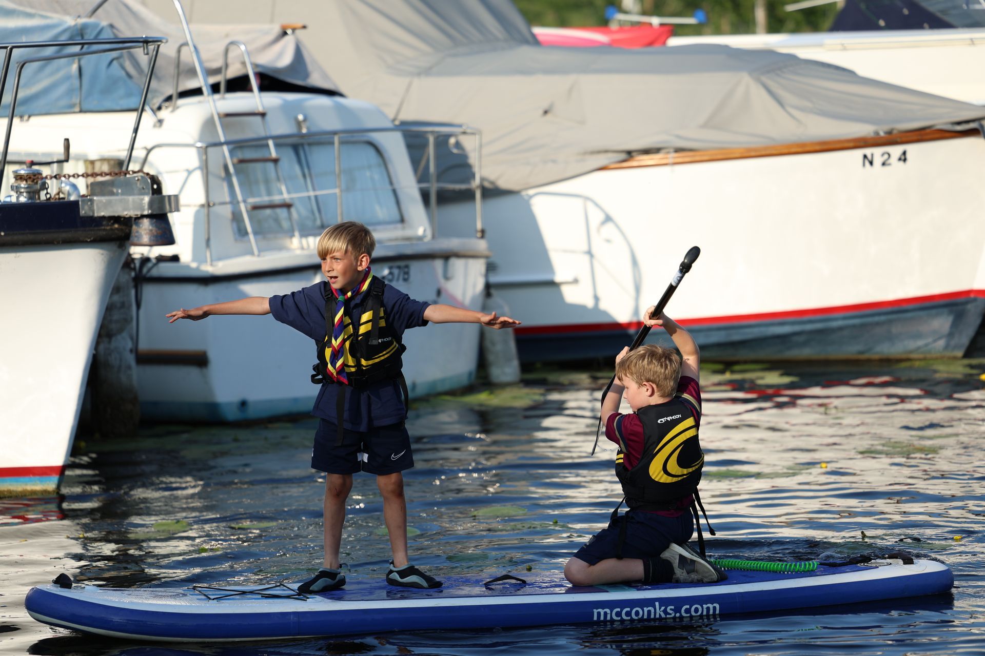 This year we introduced ‘the dining shelter challenge’ where mixed patrols from Port and Starboard Watches worked in teams to put up the prettiest dining shelter in the fastest time. I’m not sure there was an eventual winner but the scouts progressed their camp skills no end! Could we extend the concept further next year? Race around the broad? Fastest SUPer?