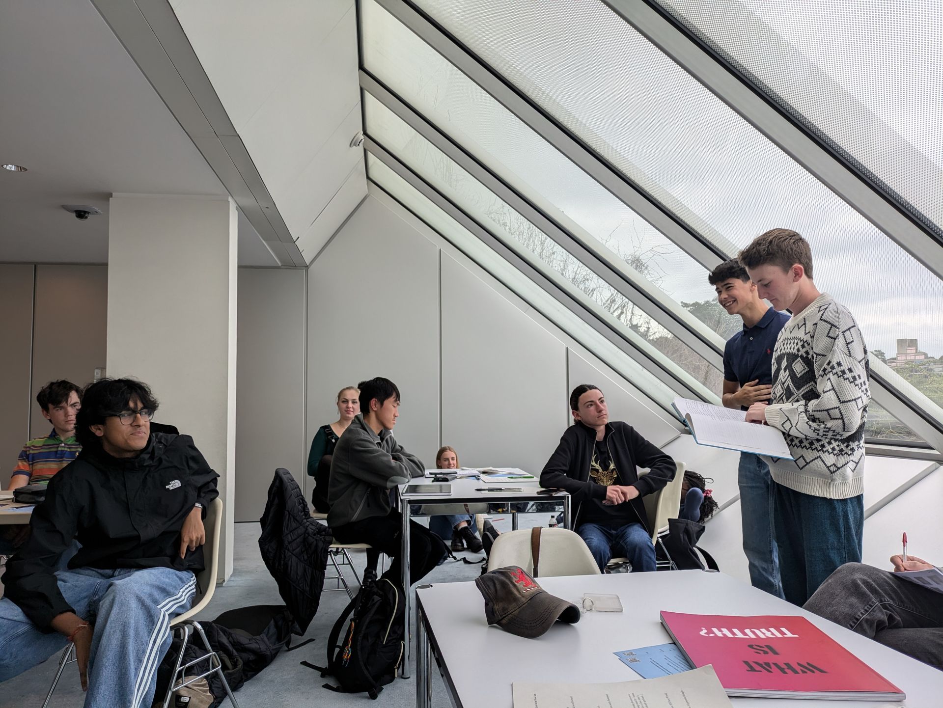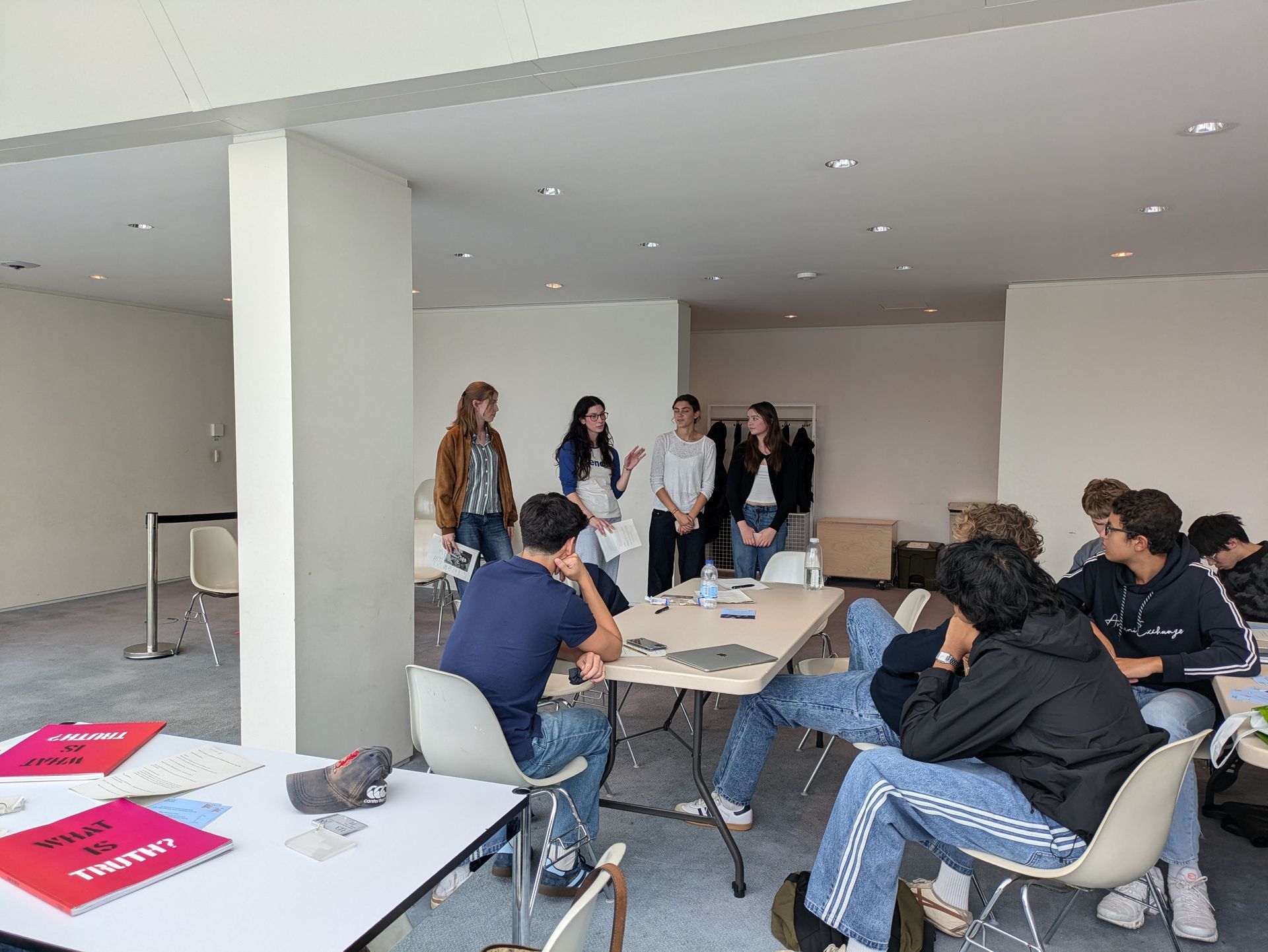 A group of sixth form academic scholars visited the Sainsbury Centre exhibition "The camera never lies" part of the "What is Truth?" series they have been running. The pupils chose which image to discuss first as a small group and then with the whole room. The themes they chose ranged from voting fraud in the USA, to censorship and the digital world and the ethics of photojournalism.