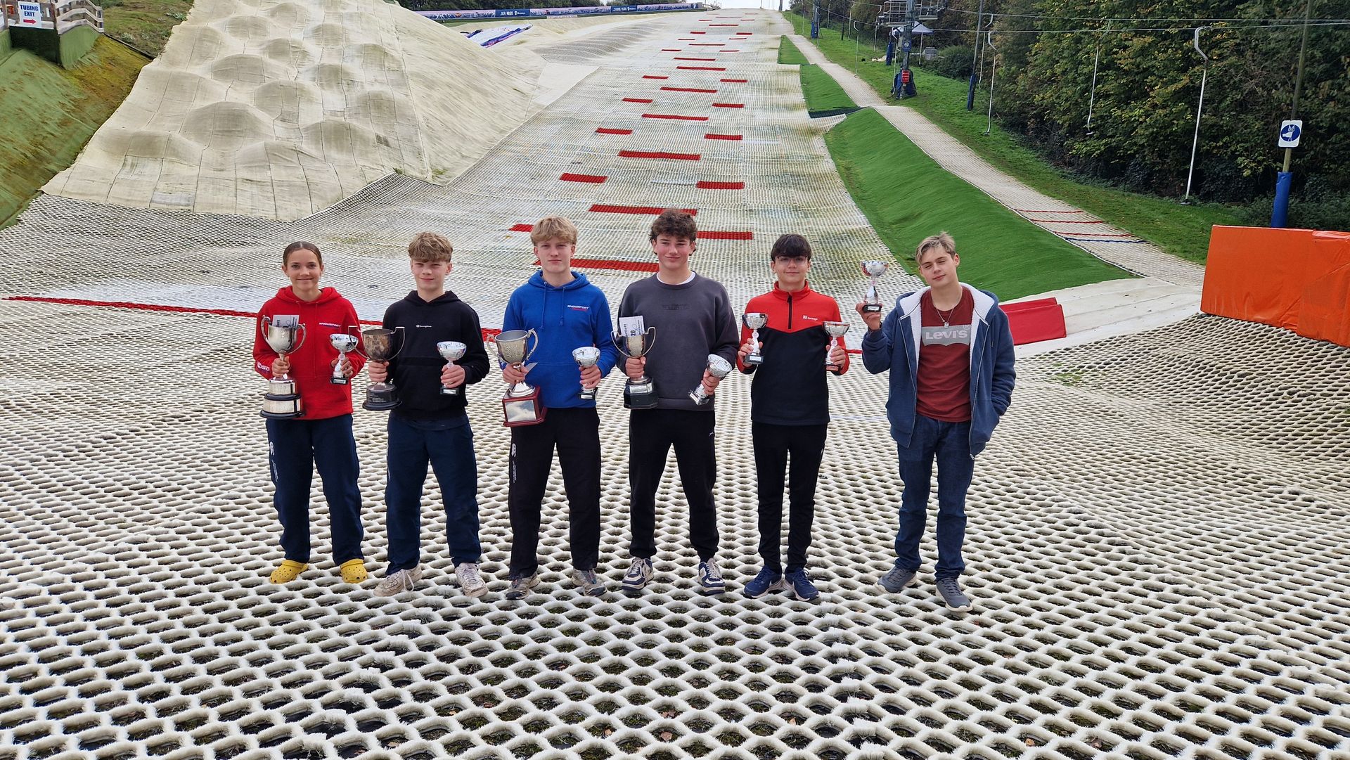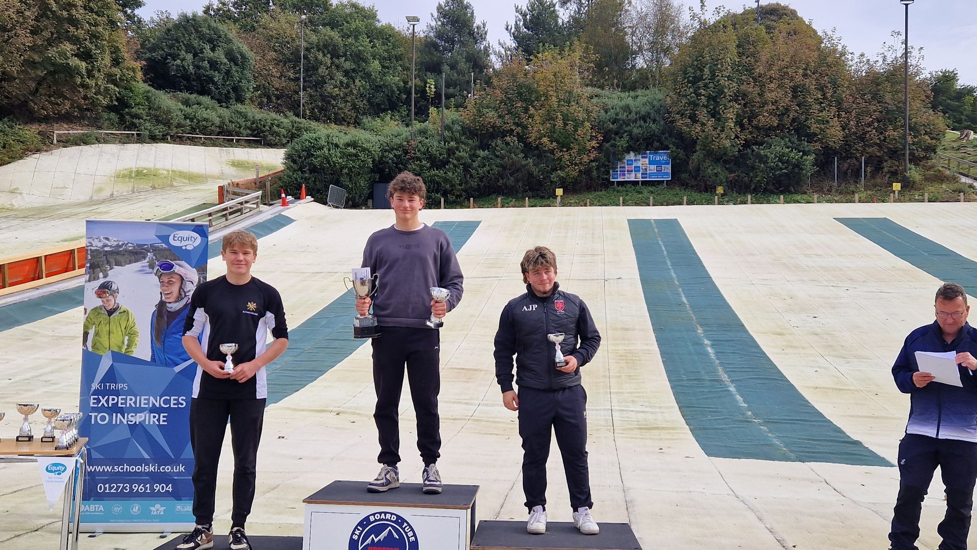 On the Sunday it was the Open team and Individual finals. Our teams from Saturday were joined by a second boys team of Jake Roper, Charlie Barker and newly selected Snowsport England Freestyle squad member Harry Croft. They produced 5 good runs between them out of 6, but one mistake meant no finishing position. The boys first team all stepped up their levels from Saturday and retained the Open English title by a clear margin. The girls team skied well and finished 7th meaning both teams have qualified for the British finals in Wales in November.
