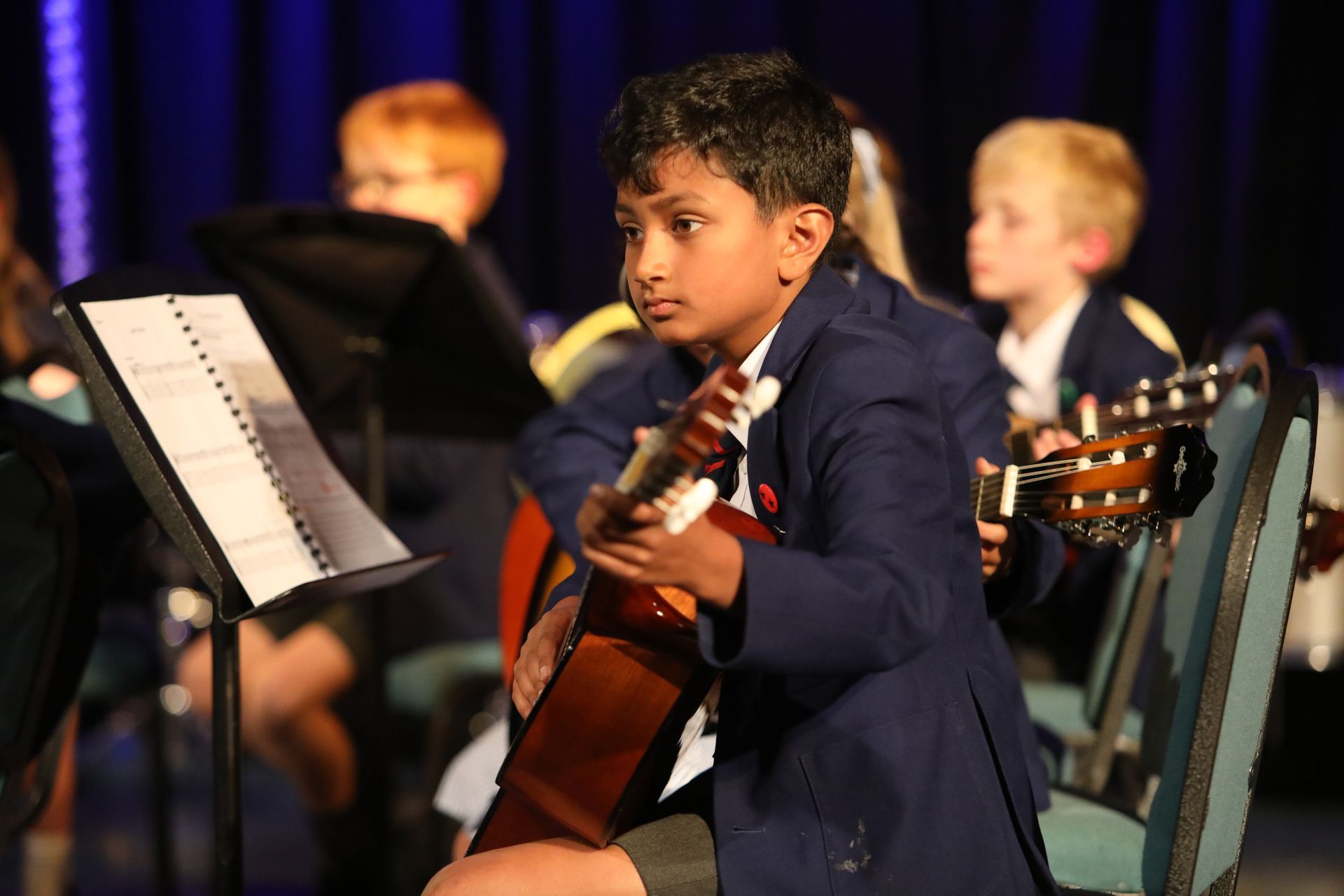 The Lower School’s Michaelmas Concert at the King’s Centre was a whirlwind of colour, confidence, and heart-melting musical performances. From plucky guitars to dreamy harp tones, the night showcased our wonderful young performers. The Guitar Ensemble set the tone with Corena Cracknell’s Bajito Samba, plucking their way through Latin rhythms with impressive focus. The toe-taps in the audience spread like a ripple—always a good sign—and the students handled the syncopations with style. Then the Infant Choir delivered a double bill full of charm - Orange and Yellow and Brown painted the autumn season with warm singing, followed by a wonderfully spirited Monster Stomp—suitably growly, adorably fierce, and 100% crowd-pleasing. Celebrating recent successes in the Concordia Recitals, 3 pupils were chosen to showcase their solo instruments starting with Moli Li on the keyboard, who dazzled with two Classical gems: Spiritoso by Clementi and Sonata in C Major by Kuhlau. Crisp phrasing, calm poise, and beautiful musicality. Next was the Reception Choir who took us to France with some traditional tunes: Un, Deux, Trois, Sur le pont d’Avignon and Frère Jacques. Delivered with bright eyes and sung entirely in French, each piece was sweeter than the last. The String Ensemble then took to the stage and brought a wider emotional palette, with Golden from K-Pop Demon Hunters—a sleek, modern contrast to the rest of the programme. Their expressive playing continued through every bar, showcasing impressive maturity for such young string players and also highlighting some impressive solo playing from Phoenix on the Violin and Max on the Cello. Another of our Concordia recitalists, Harpist Georgia Cornell Du Houx offered a serene contrast with Jeremiah Clarke’s Chaconne before filling the hall with glistening textures in The Flower Duet by Delibes. A truly magical moment—audiences leaned in as if the Harp itself was casting a spell. The Lower 2 Little Voices group lived up to their name and lit up the stage with Happy Song —a bright, bouncy number complete with air guitars! A real crowd pleaser! Our final Concordia pupil Betsy, played with crisp articulation and elegant control on the keyboard, bringing Germaine Tailleferre’s Sonata “All Scarlatti” to life with stylish flair, followed by a tender and lyrical rendition of Alexis Ffrench’s Last Song. A beautifully balanced pairing. Moving into pop territory, the School Choir delivered a heartfelt version of the classic Time After Time with some beautifully blended harmonies and a spirited version of the Foo Fighters’ Learn to Fly. Voices were warm and full, and their enthusiasm was nothing short of infectious. Closing the evening with poise, the Chamber Choir offered a beautifully controlled performance of The Water is Wide, followed by the up-tempo Scottish Riddle - full of tongue twisting brilliance! A perfect finale to a wonderful evening of music making. From thundering tiny monsters to shimmering harp lines, the Lower School Michaelmas Concert was a glorious showcase of talent and pure joy. Whether it was a first stage appearance or a seasoned young musician polishing their craft, every performer contributed to a heart-warming evening that left families beaming and teachers glowing with pride.