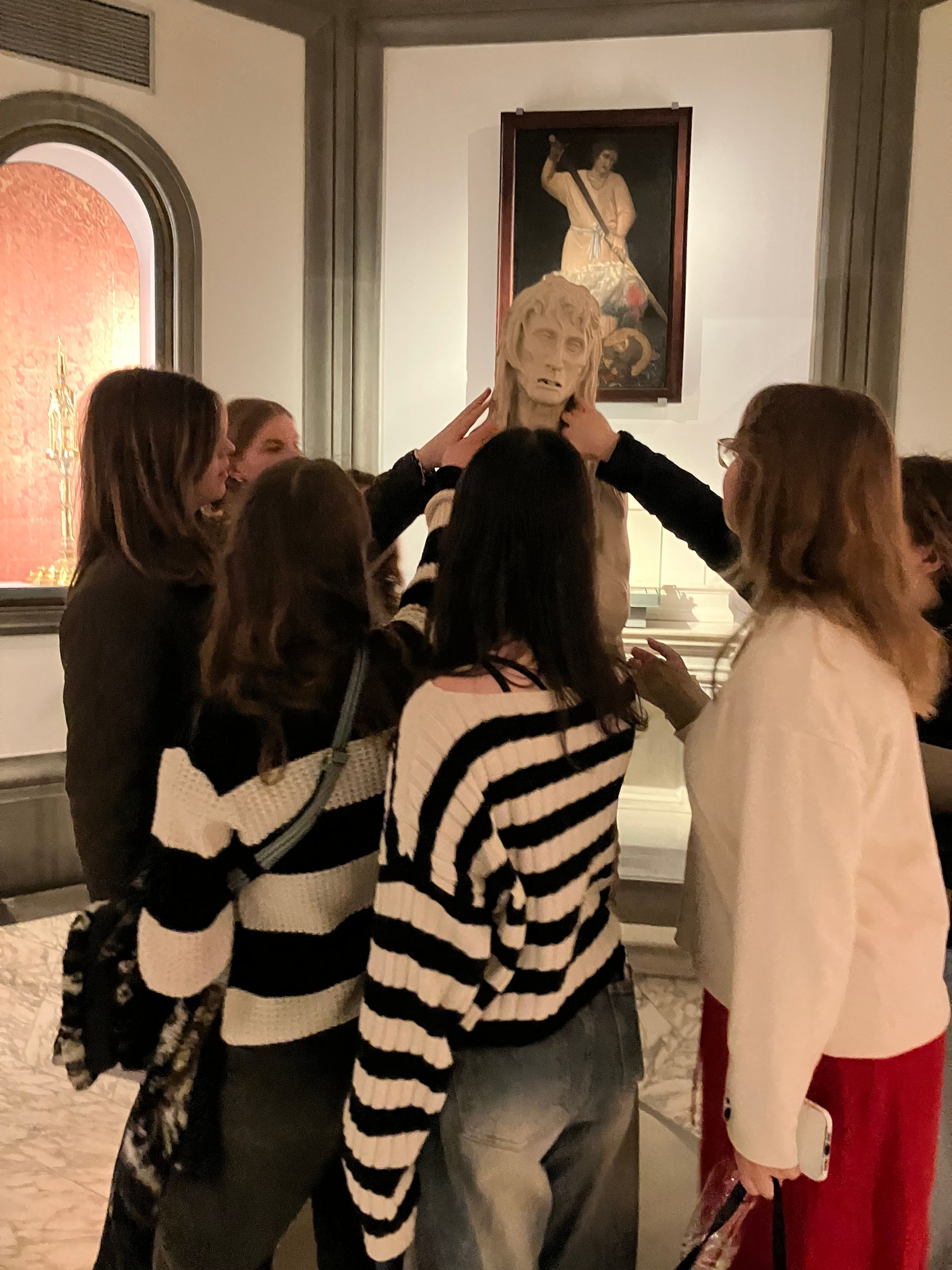 This February half term our Art History 6th Form pupils were treated to a 6-day trip to Italy which offered them the opportunity to study the artworks from their Renaissance Paper on location. They visited Rome, Florence, and Venice, starting each day with orientation walking tours to give them historical overviews and take in each city's key sites and geographies before heading to the chapels, basilicas, museums, and galleries to see individual paintings, sculptures, and buildings from the course. Each day finished in local restaurants so pupils could try the regional cuisines. Some highlights included climbing the Dome of Florence Cathedral, taking a gondola across the Grand Canal, and seeing the Pantheon lit up at night.