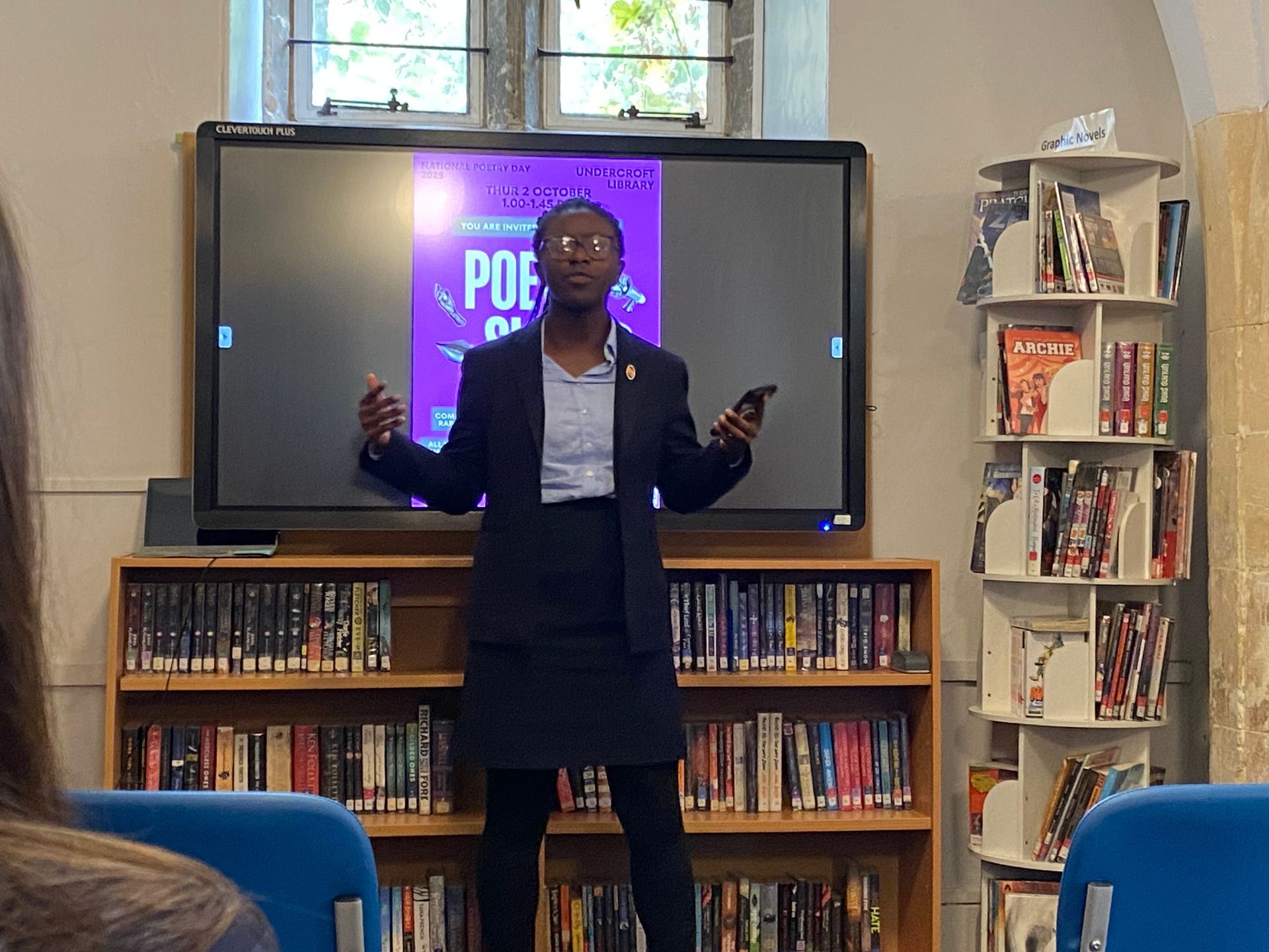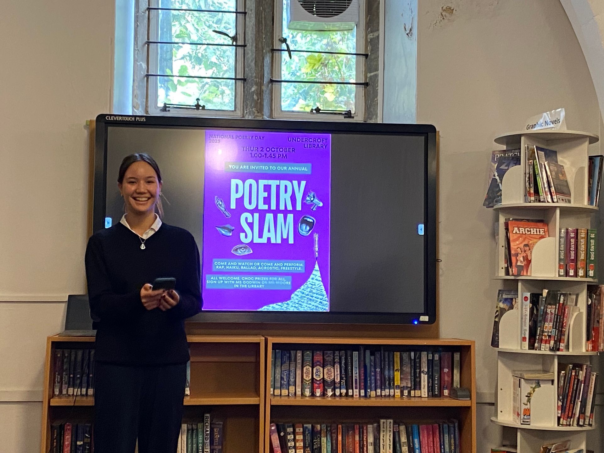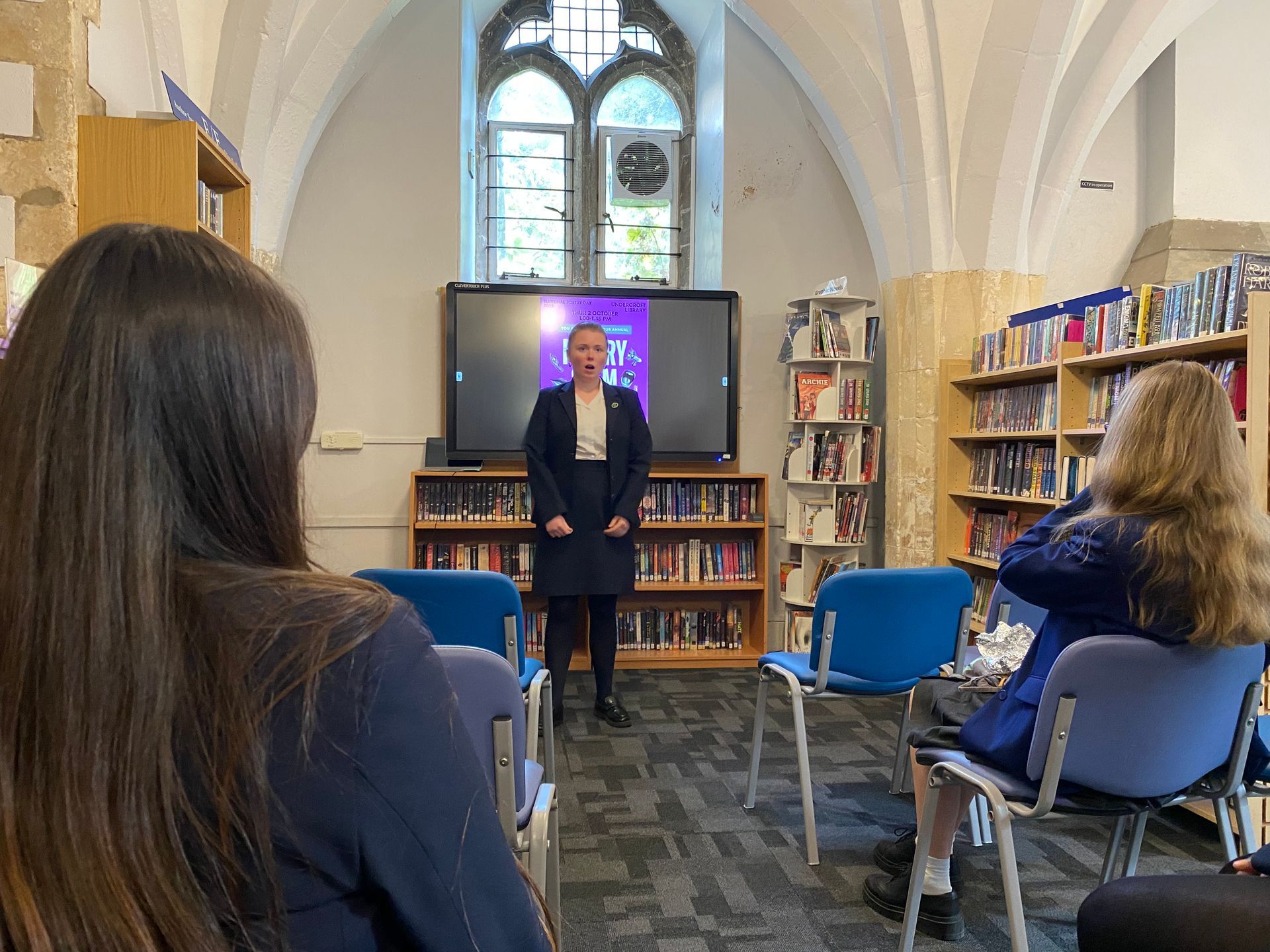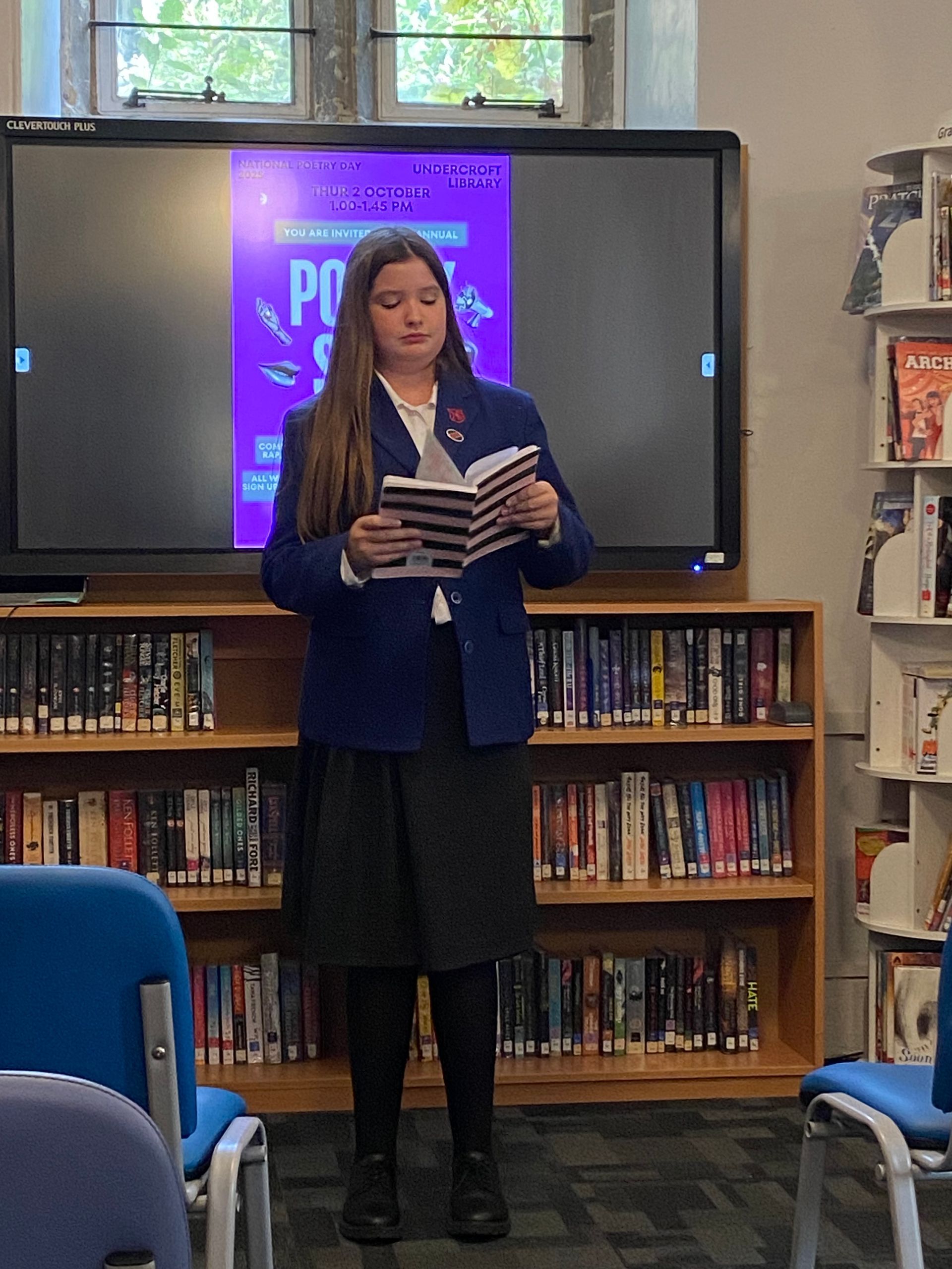 Pupils from Lower Four to Upper Six gathered for a vibrant Poetry Slam in the Undercroft Library on National Poetry Day, showcasing an impressive range of talent and creativity. Performances included original works, from extended narratives to short, sharp pieces, alongside “found” poetry created from a page of a dictionary, classic verse by Christina Rossetti, some humorous contributions, as well as rap performances.