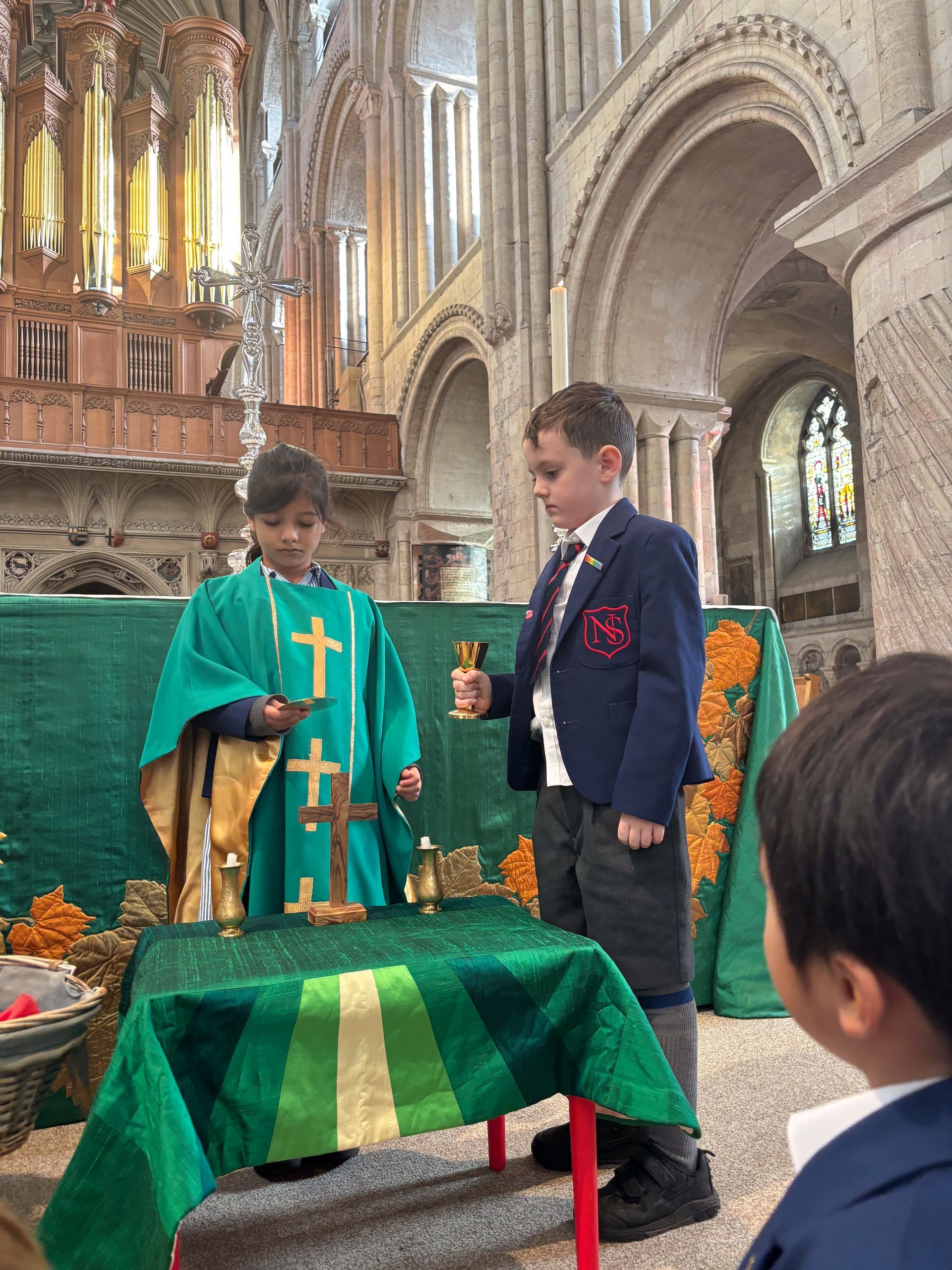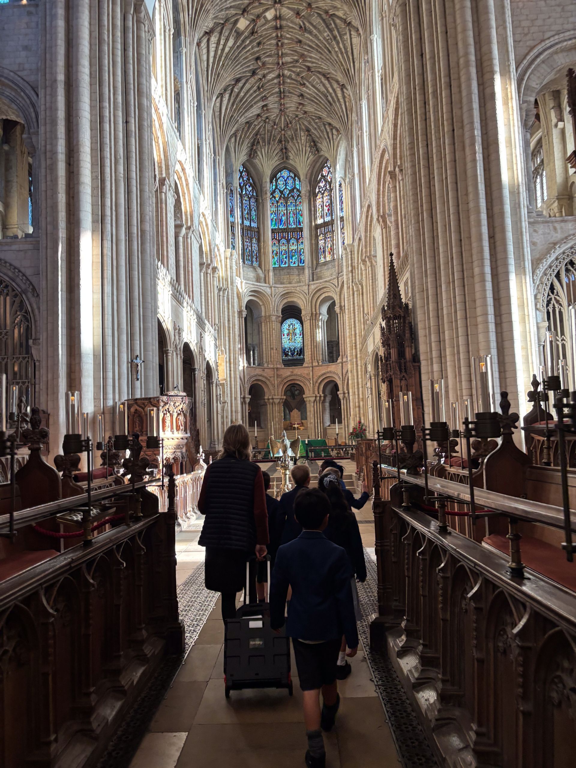 Upper 1 from Norwich School explored the Cathedral during the Big Bible visit, using the vaulted ceiling to trace major biblical stories. Pupils examined different Bibles, dressed in period costumes, and walked the nave to imagine events such as Jesus calming the storm as the seas parted. They also reflected on creation and prophetic tales while engaging in guided discussion. The morning concluded with a shared prayer for health and happiness for the whole year group, offered together in unity.