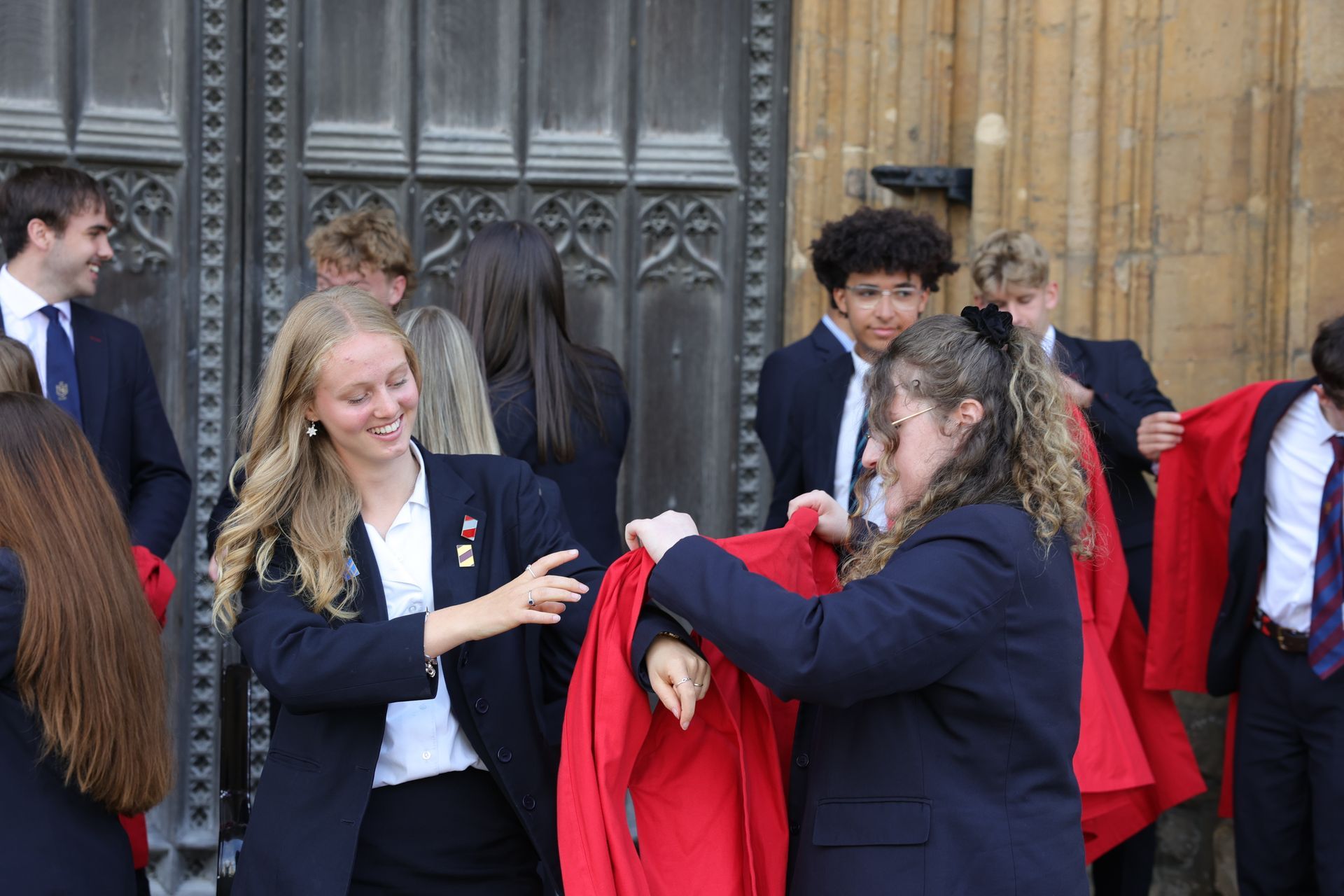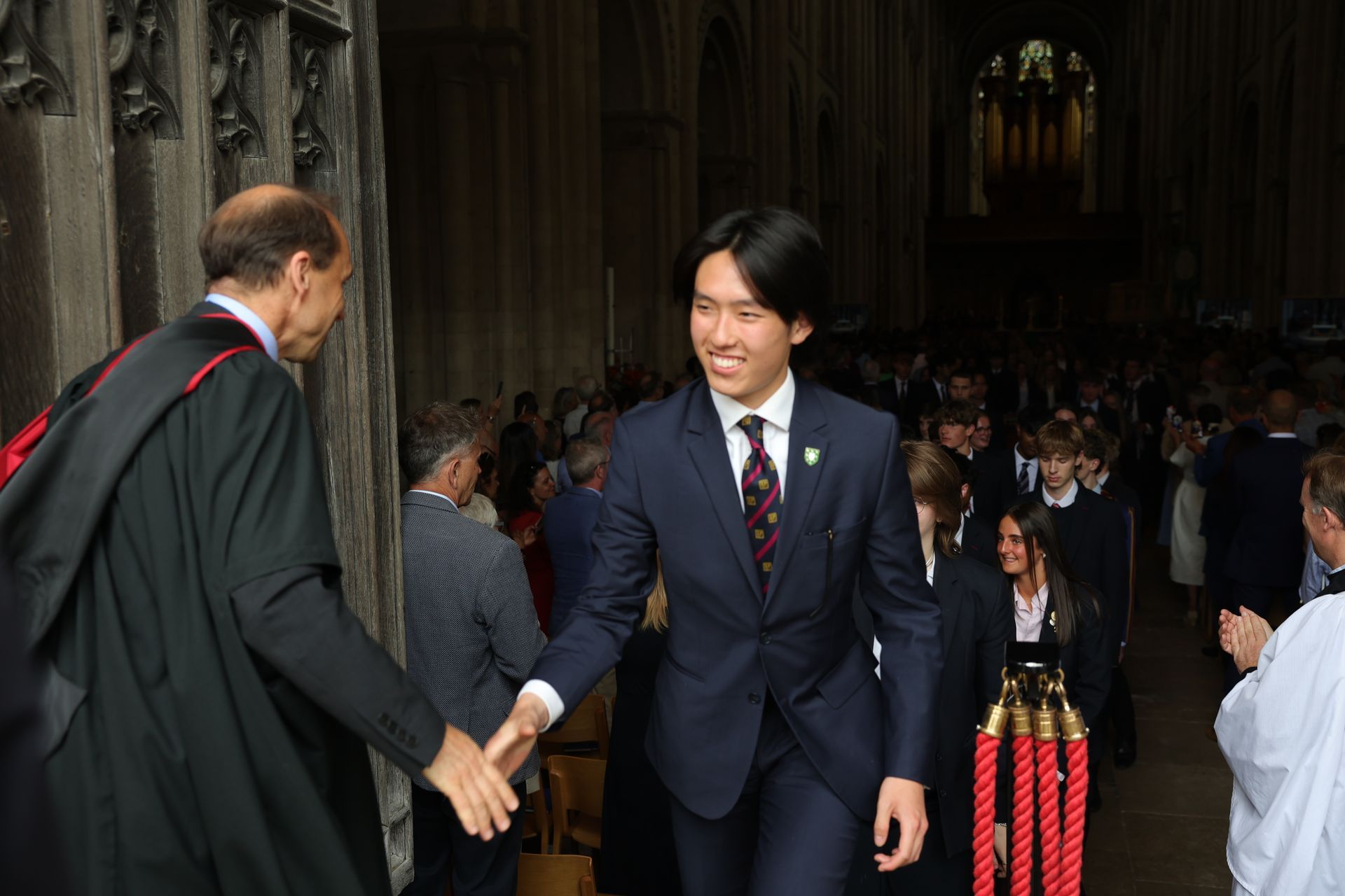 Parents and Guardians then joined the celebrations for a brunch on the Refectory lawn before filing into the Cathedral for a very special Farewell Assembly. It was hard to spot a dry eye as parents and pupils joined in singing I Vow To Thee My Country and Jerusalem, and the Head delivered a moving and inspirational address. The congregation were then upstanding and clapped continuously as the Upper Sixth filed out of the Cathedral for the very last time, exiting the West Doors, where they were greeted with a farewell and handshake from the Head.
