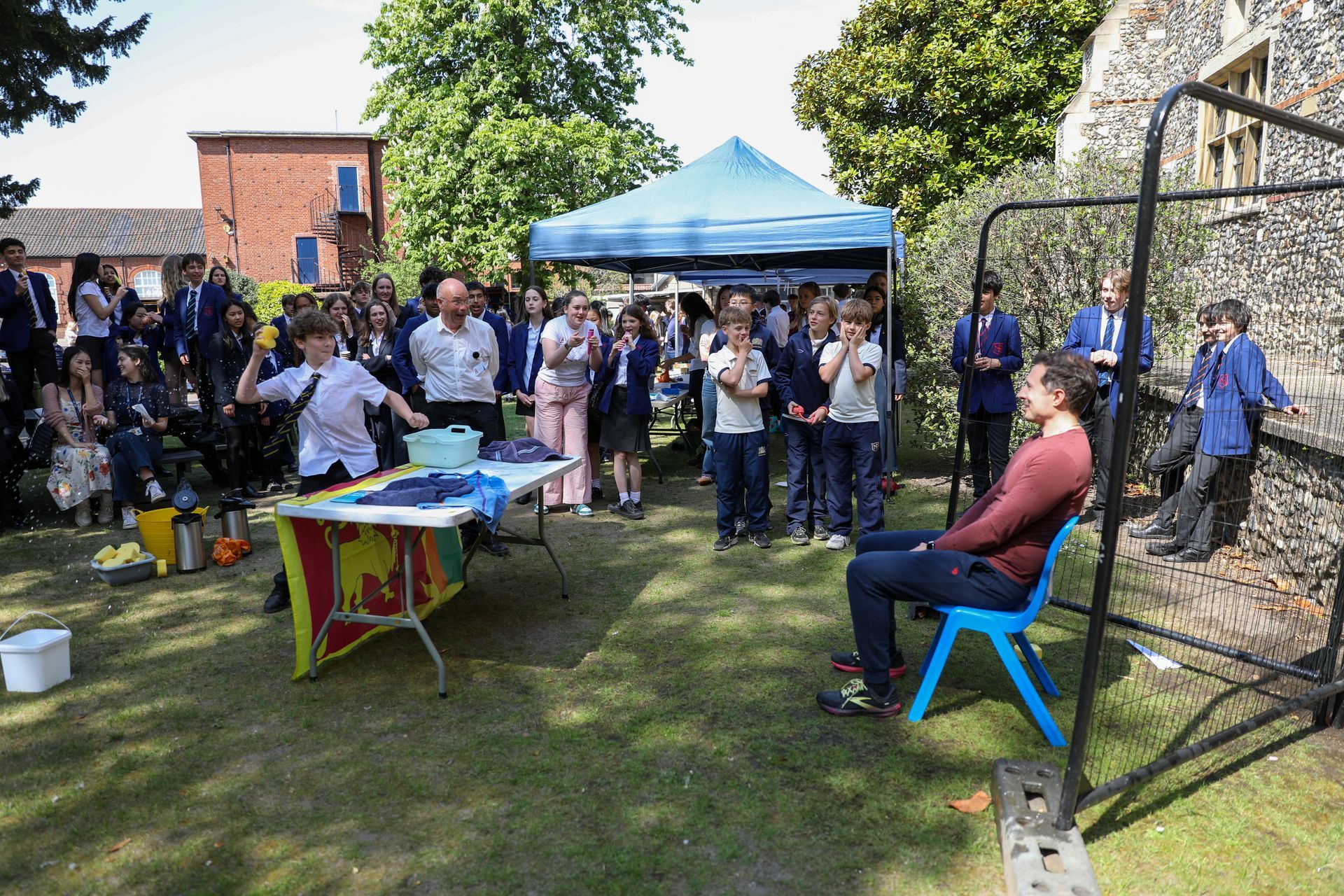 There was a flurry of activity on the Palace Lawn on Friday 2 May during the lunch break, when a selection of stalls was set up to appeal to the school community. These included Splat the Rat, Temporary Tattoos, a Coconut Shy and the ever-popular Sponge the Teacher!