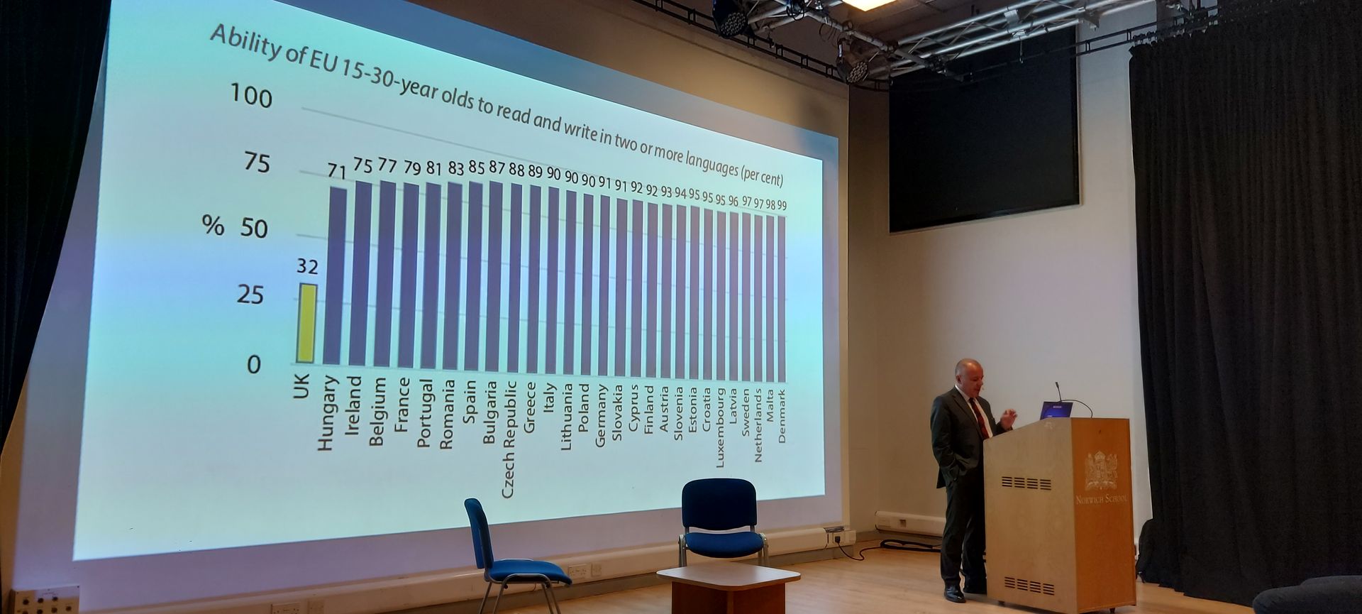 Following his talk and over refreshments a lively debate continued, discussing a wide variety of thorny issues brought up in his talk. These included the short-sightedness of monolingualism, the value of languages to improving vaccine take-up during the pandemic, our woeful language proficiency versus our European neighbours and challenges with current grade boundaries in language A Levels.