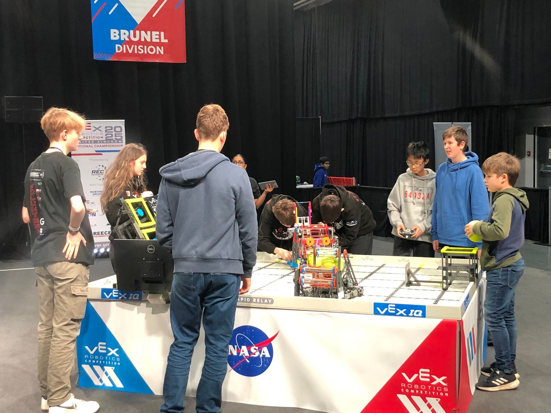 On Saturday March 1, four L4 pupils and six U4 pupils traveled to Telford to compete in the VEX Robotics National Finals. The event took place at the Telford International Centre over two days: Sunday 2 March, and Monday 3 March. With 60 teams from across the UK in attendance, the venue buzzed with excitement.