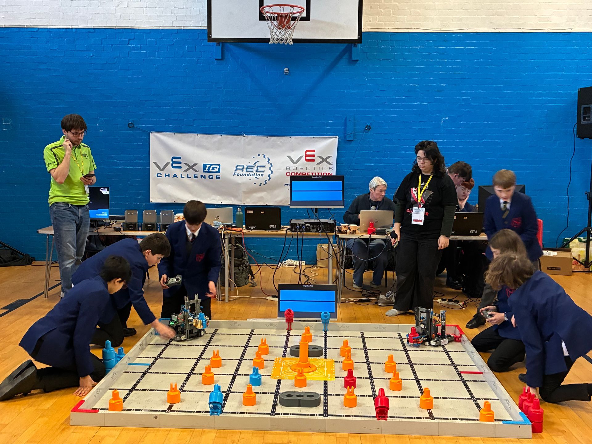 On Friday 16 January, three of our VEX Robotics teams from Lower 4, Upper 4 and Lower 5 travelled to Thomas Lord Audley School in Colchester to take part in a regional robotics competition. It was an exciting and memorable day for several pupils, with this being their first experience of a competitive robotics event. All three teams performed brilliantly throughout the day, making this our most successful competition overall to date. Following the qualification matches, we were delighted that teams finished an impressive 2nd, 3rd and 4th overall out of 16 teams. Whilst no trophies were awarded in this instance, the standard of performance was exceptional. A special mention goes to the Lower 5 team of Oscar Zhang, Jj Li and Jayden Hondonga, who finished joint first in the Driver Skills section of the competition, despite having to rebuild their robot during the event. The teams were accompanied by Mrs Brown and Mr Moore, who were incredibly proud of how all the pupils represented the school. Congratulations to all who took part!