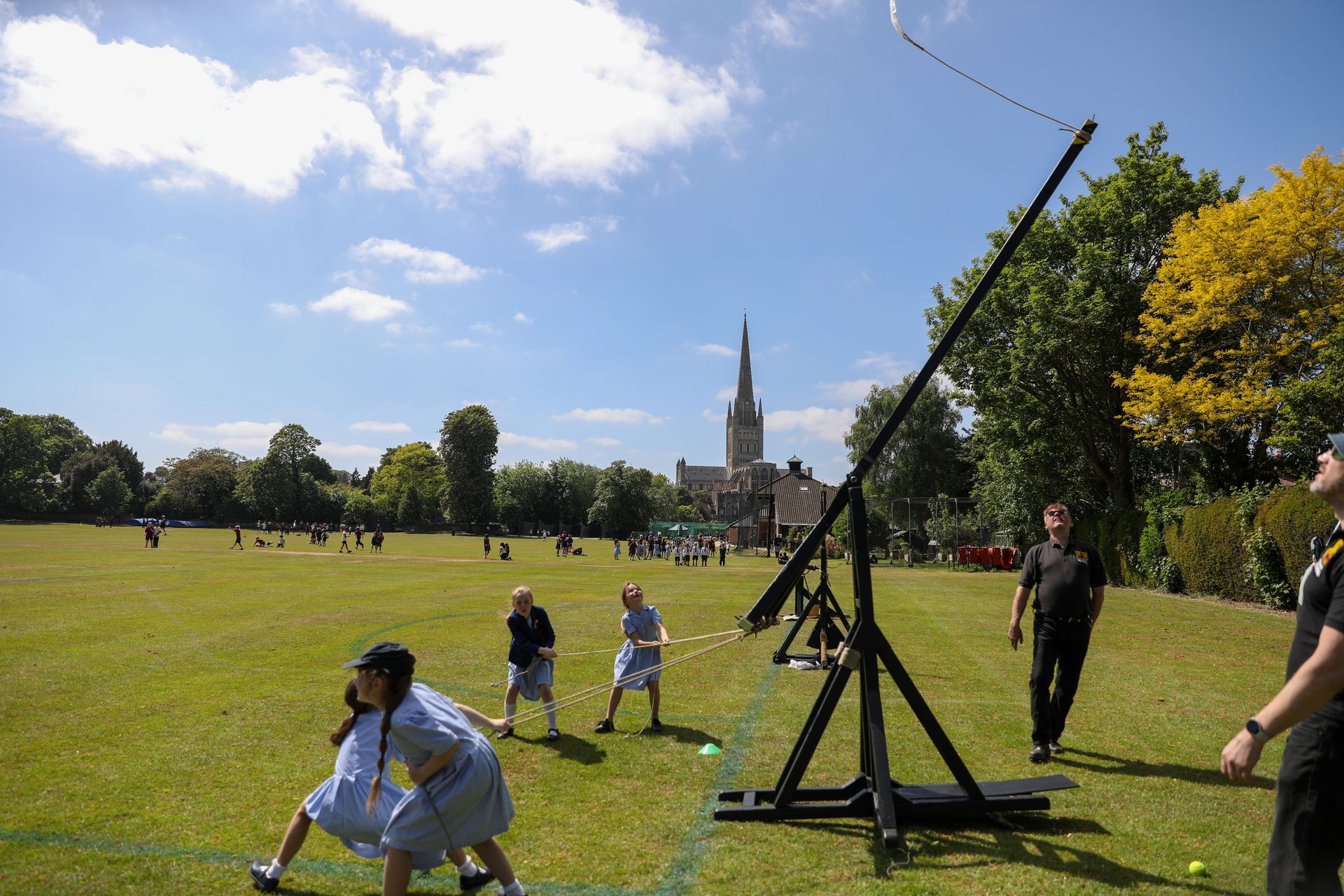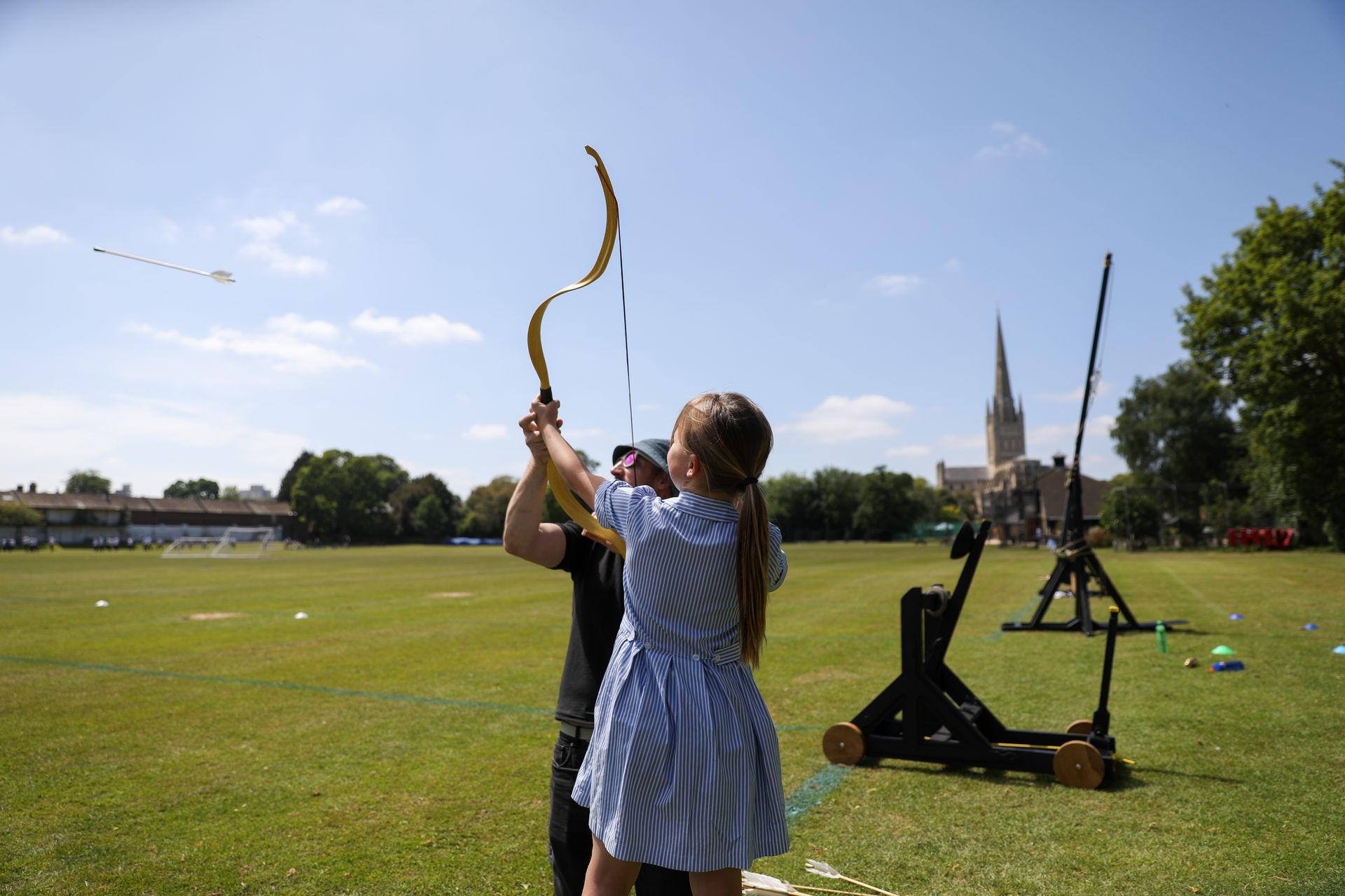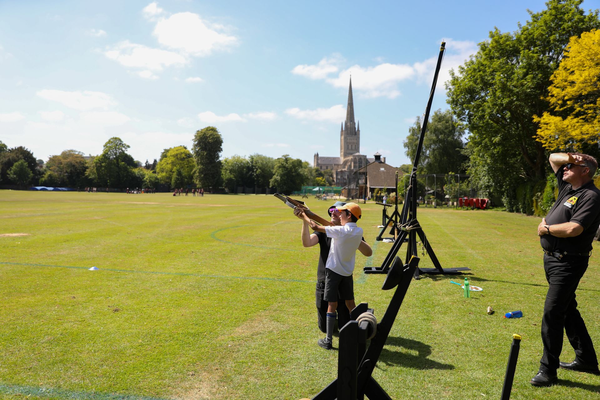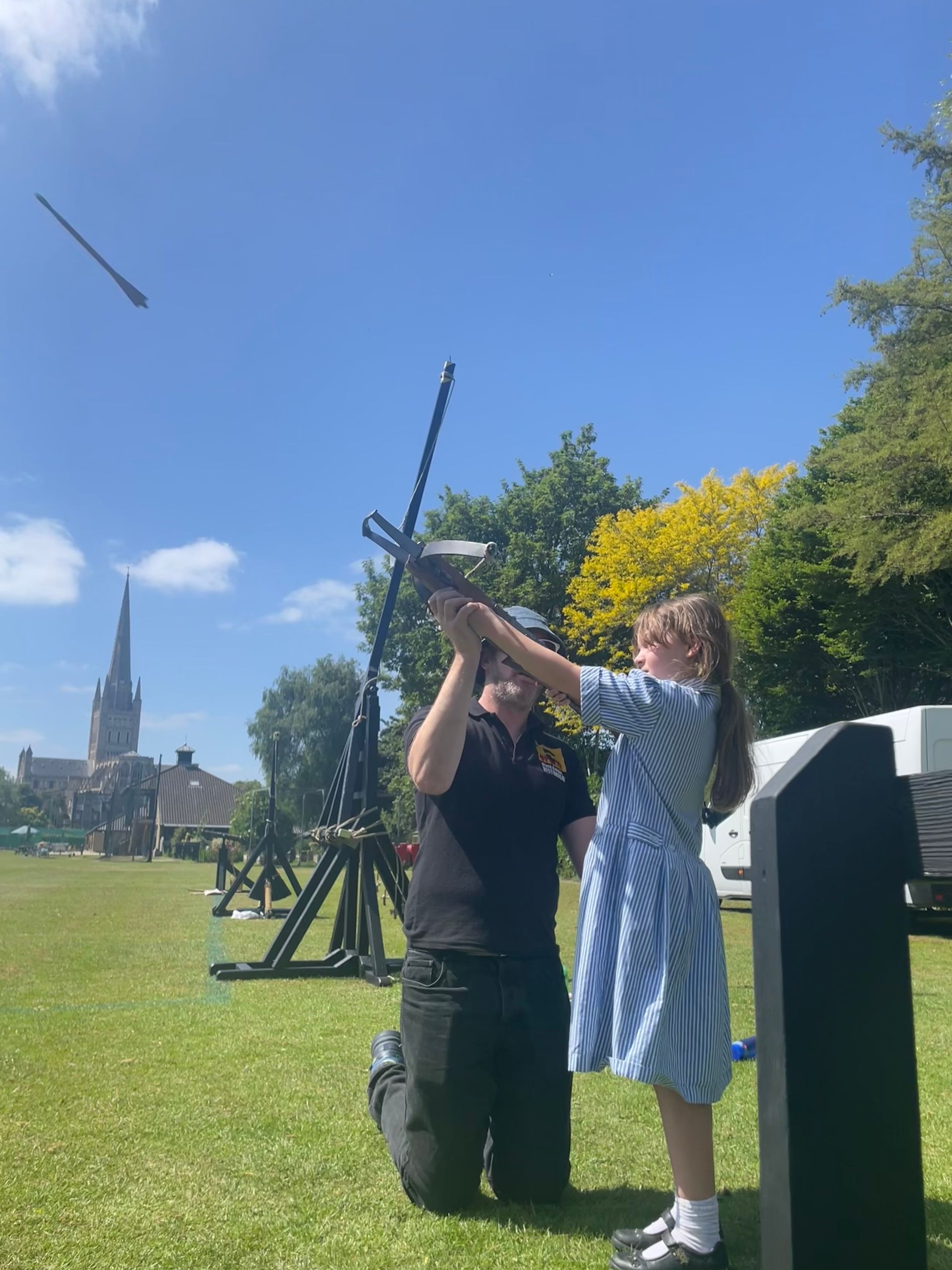 Then came the real excitement: launching those projectiles! Starting by hand, pupils then progressed to an impressive arsenal of historical siege machines, including the Mangonel, Perrier, and Trebuchet. They also had the chance to try their hand at a composite bow and a crossbow, adding a dash of medieval flair to their practical investigations.