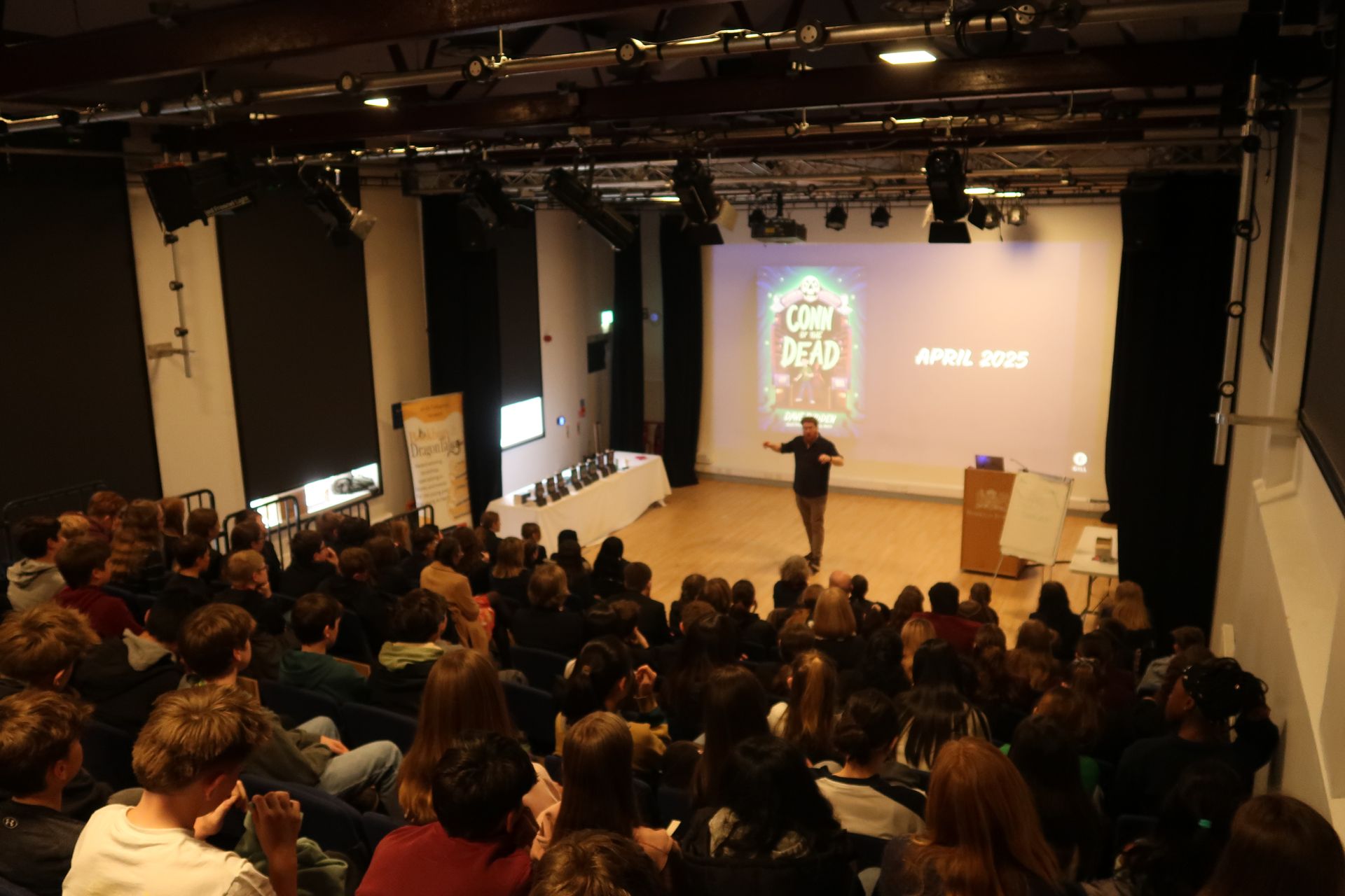 To mark the end of the Lent term, Upper 4 pupils were treated to an inspiring morning of creativity and storytelling with acclaimed author Dave Rudden. Best known for his Knights of the Borrowed Dark trilogy and his Doctor Who titles for the BBC, Dave brought his signature energy and imagination to a special creative writing workshop, where Upper 4 were joined by enthusiastic Year 8 pupils from local visiting schools.