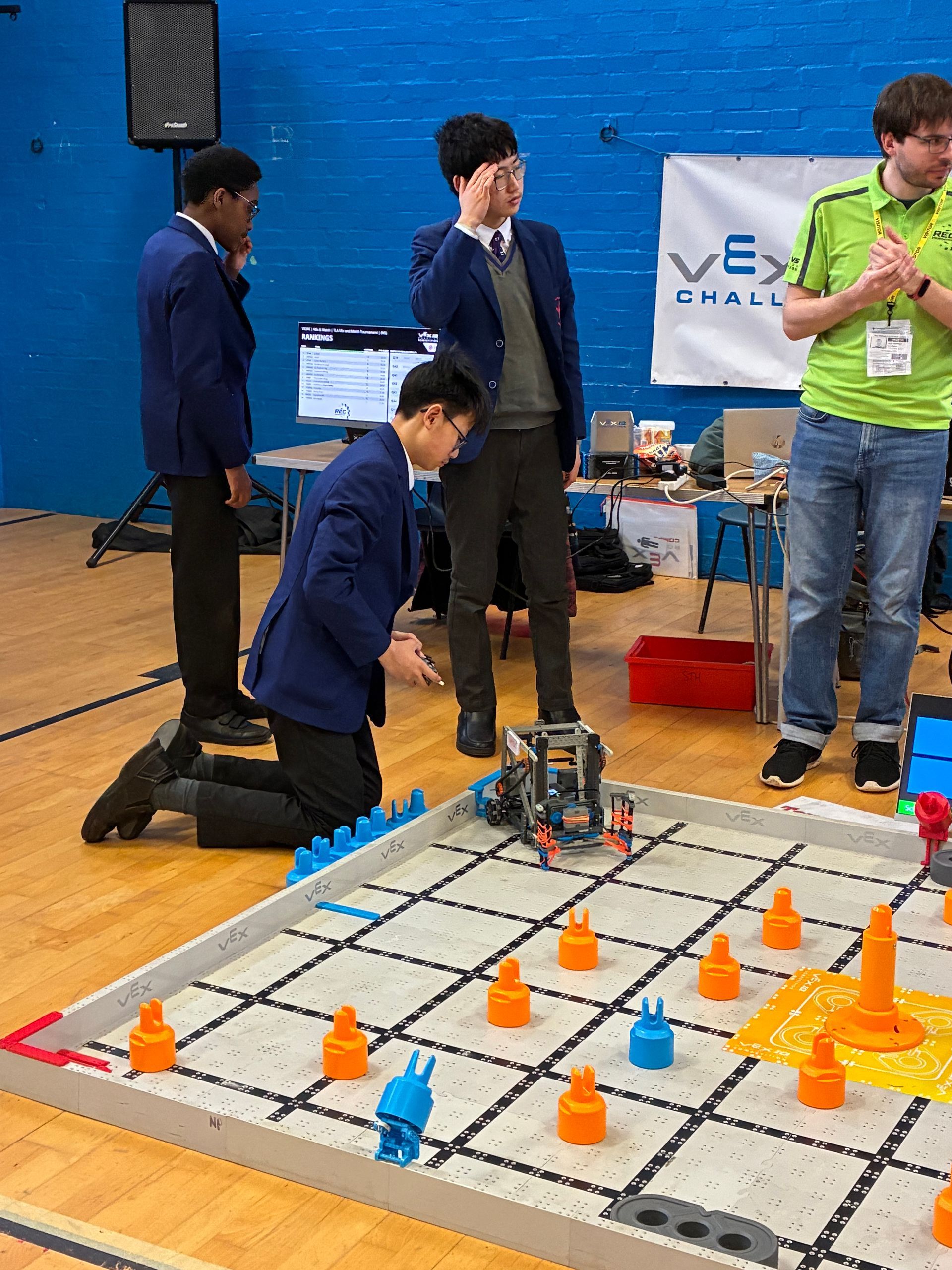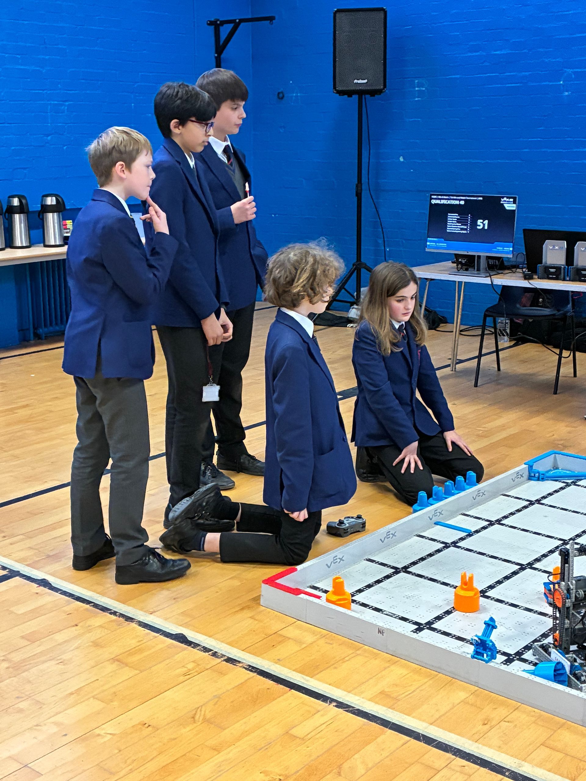All three teams performed brilliantly throughout the day, making this our most successful competition overall to date. Following the qualification matches, we were delighted that teams finished an impressive 2nd, 3rd and 4th overall out of 16 teams. Whilst no trophies were awarded in this instance, the standard of performance was exceptional. A special mention goes to the Lower 5 team of Oscar Zhang, Jj Li and Jayden Hondonga, who finished joint first in the Driver Skills section of the competition, despite having to rebuild their robot during the event. The teams were accompanied by Mrs Brown and Mr Moore, who were incredibly proud of how all the pupils represented the school.