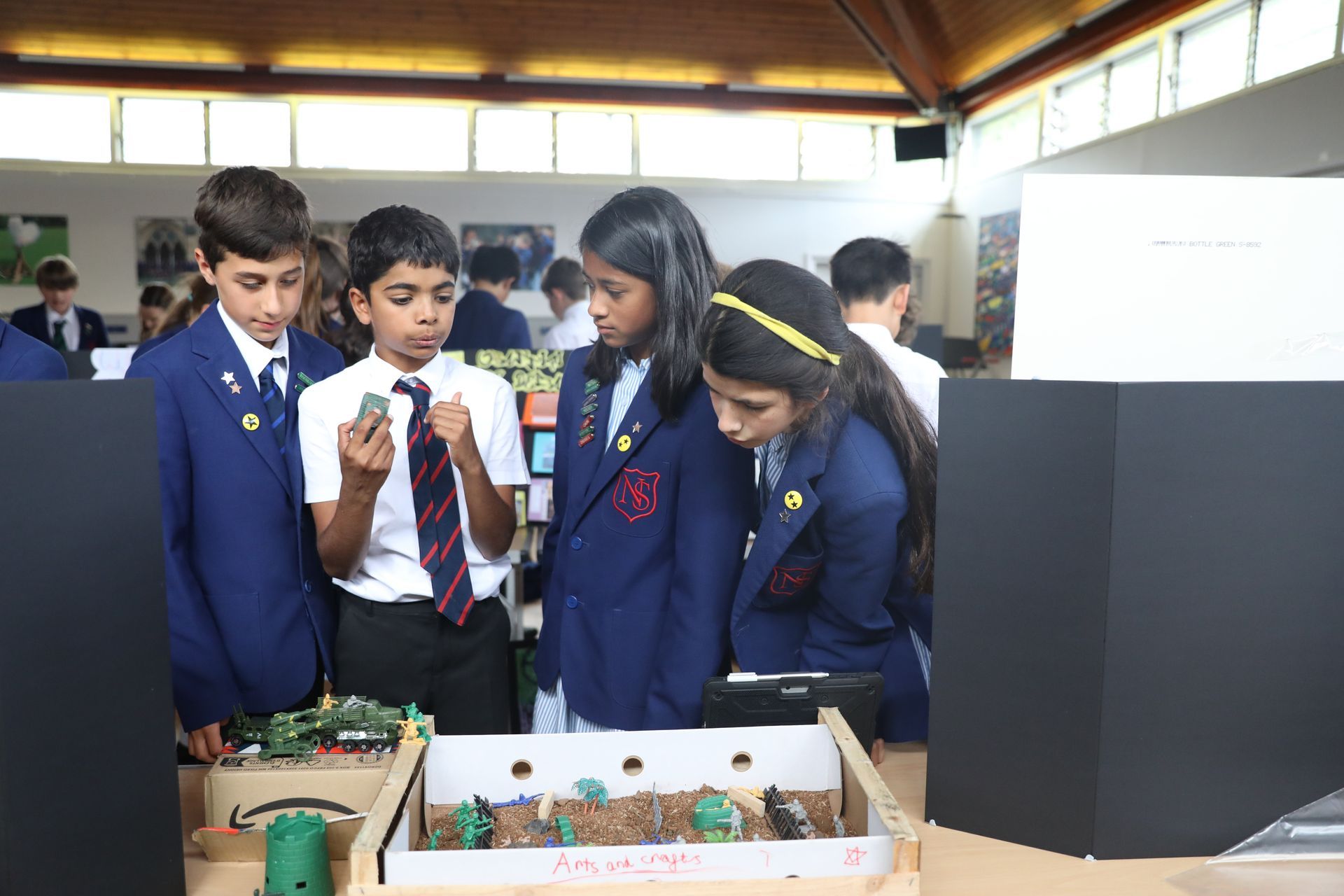 Each class took a turn standing proudly by their exhibits, while their peers moved around the room asking questions, exploring ideas, and discovering new and fascinating facts. Topics ranged from crystal growth and atomic structure to the mechanics behind video game design and coding. Other highlights included models of WWII Anderson shelters and thought-provoking investigations into graffiti as art and social commentary.